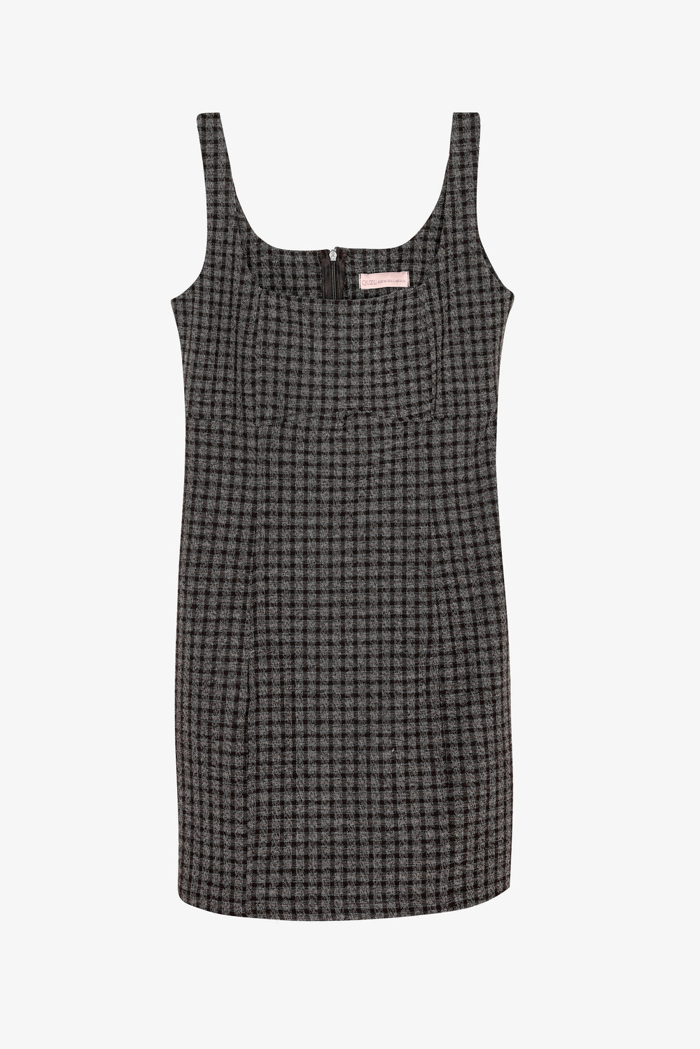 Ekose Kare Yaka Mini Elbise Kahverengi
