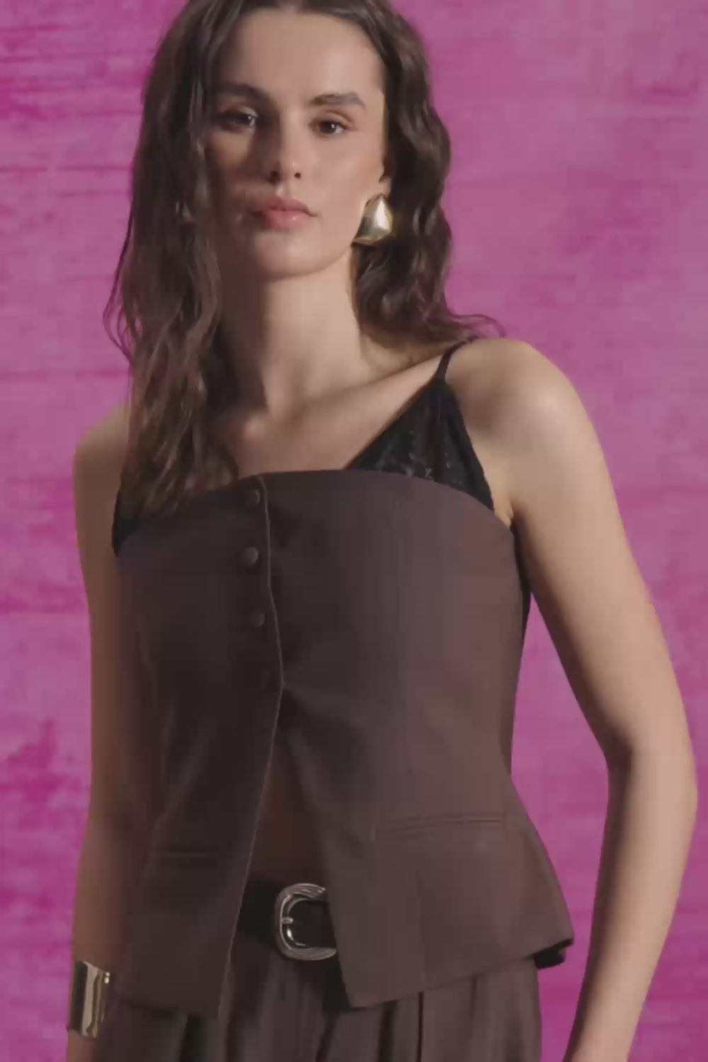 Sırtı Açık Asimetrik Düğmeli Yelek Bej