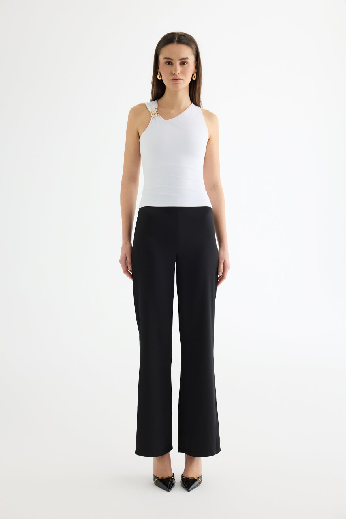 Asimetrik Yaka Metal Aksesuarlı Bluz Ekru