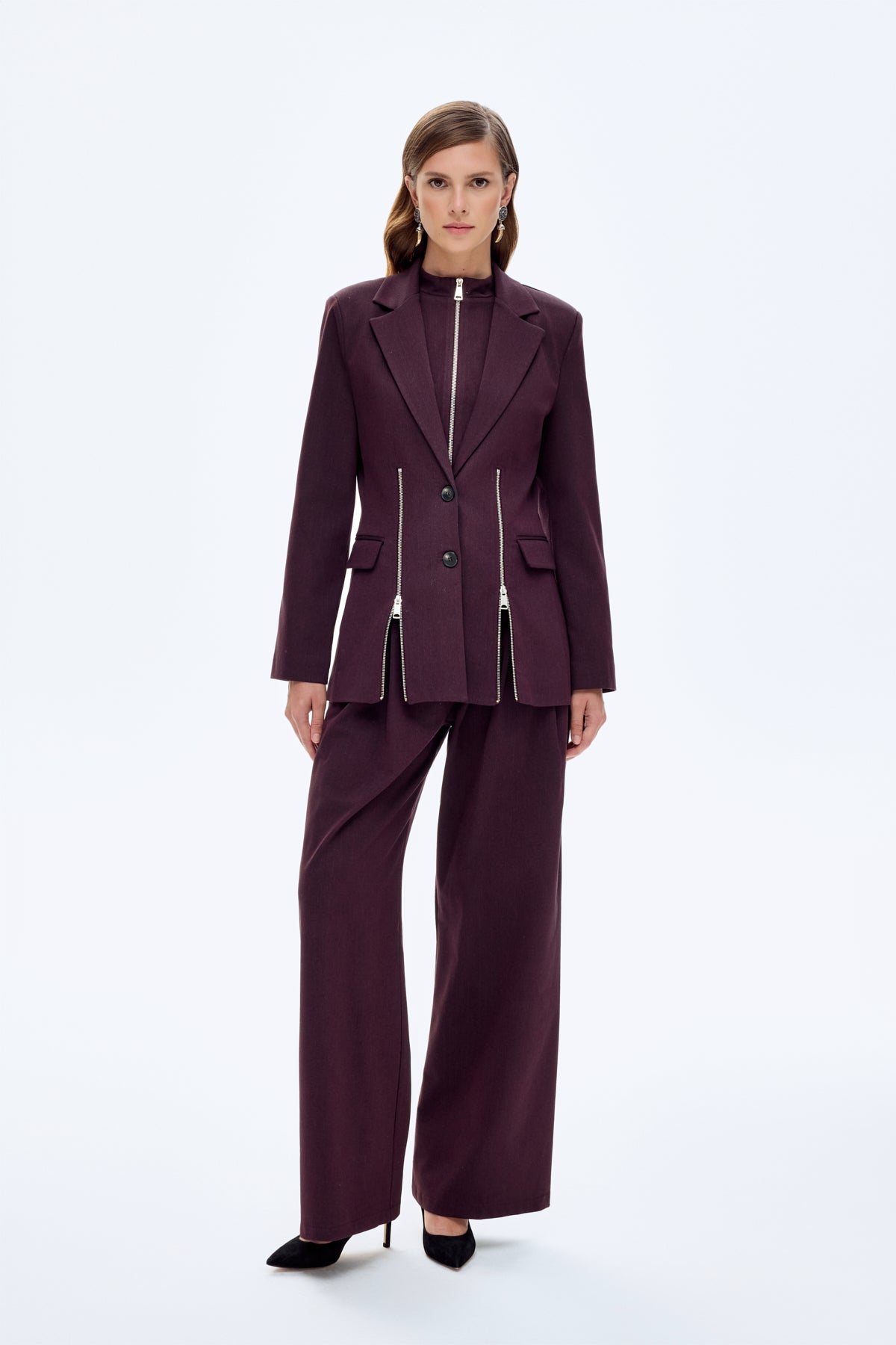 Fermuar Aksesuarlı Blazer Ceket Kahverengi