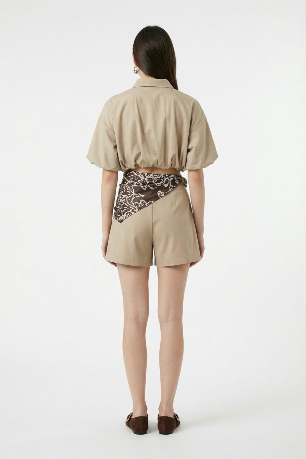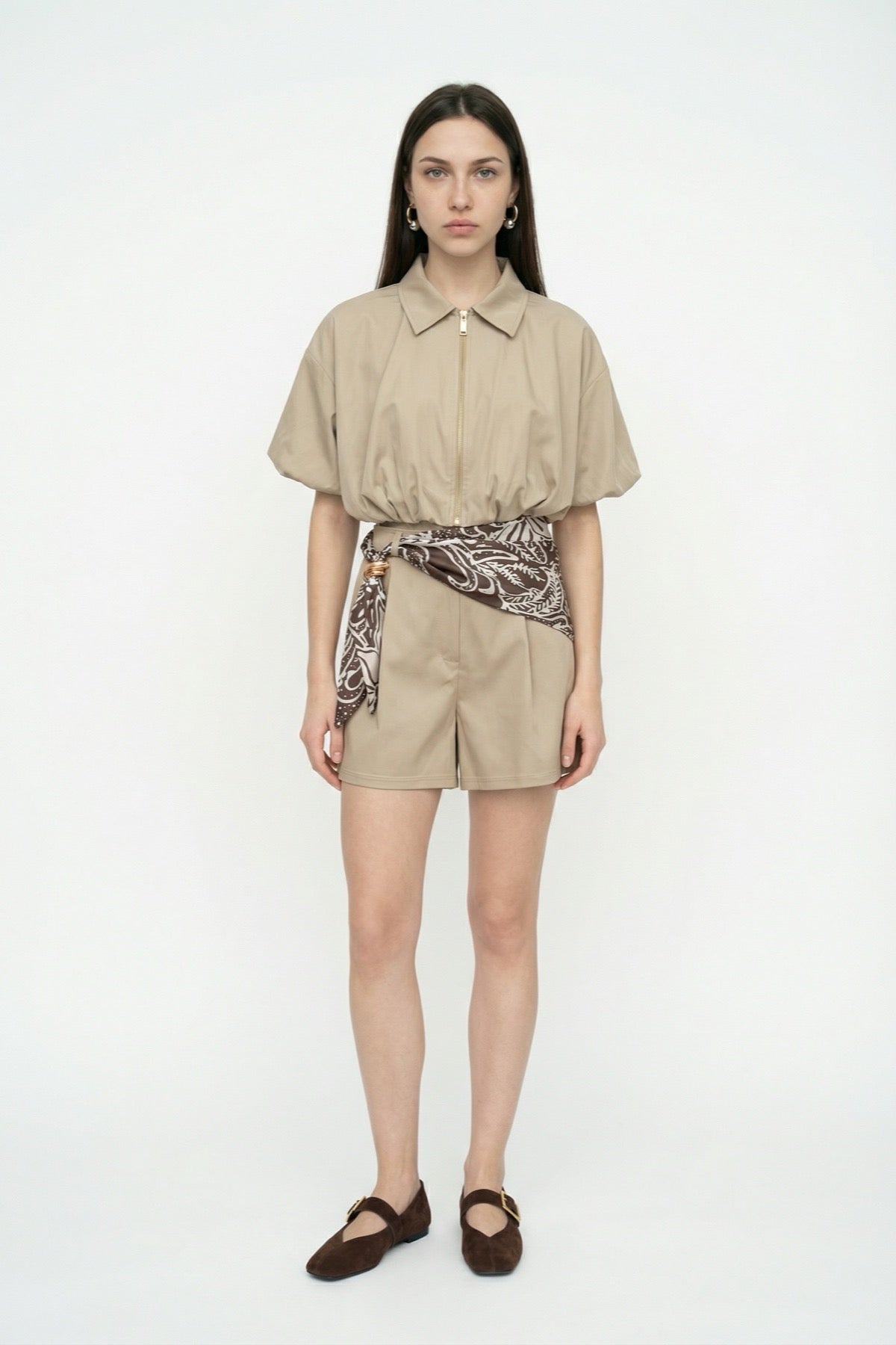 Fermuarlı Balon Kesim Crop Ceket Bej