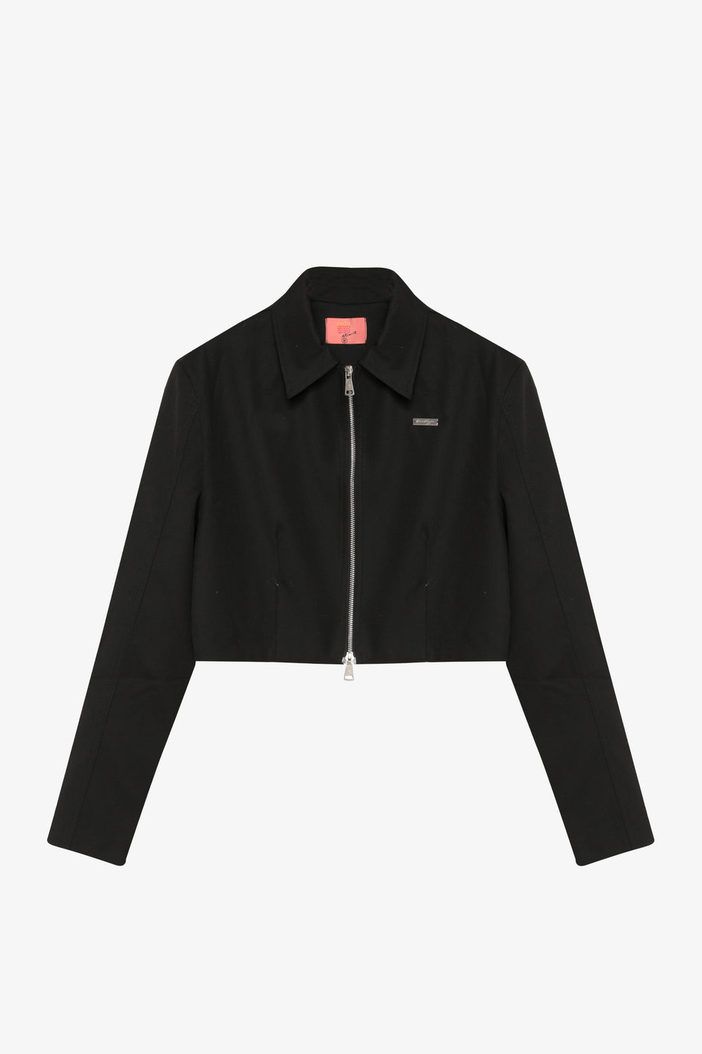 Gömlek Yaka Fermuarlı Kısa Ceket Siyah