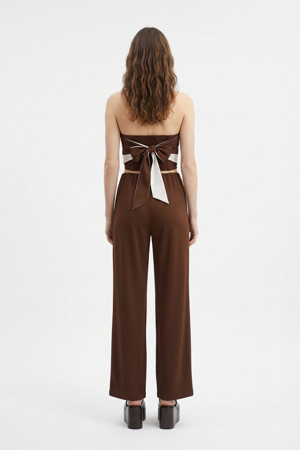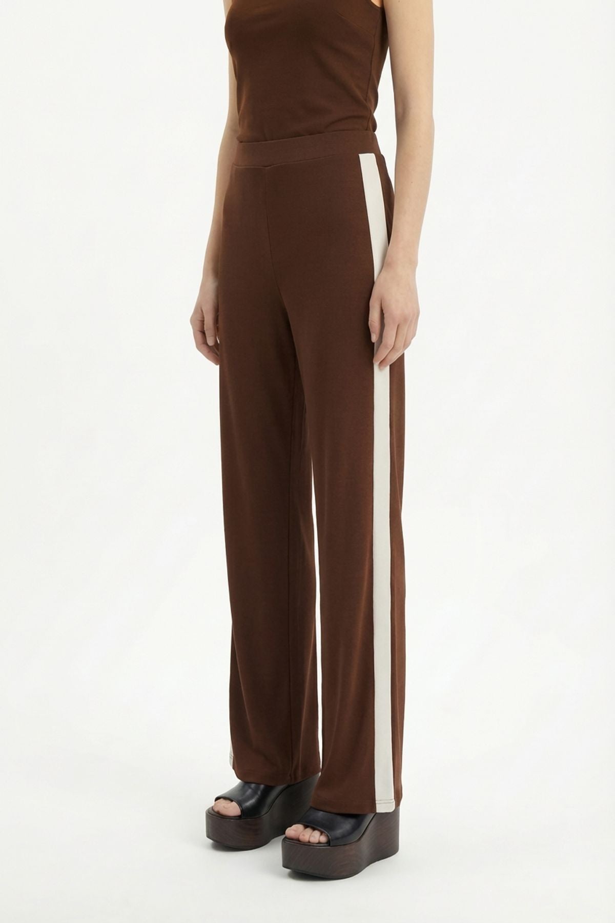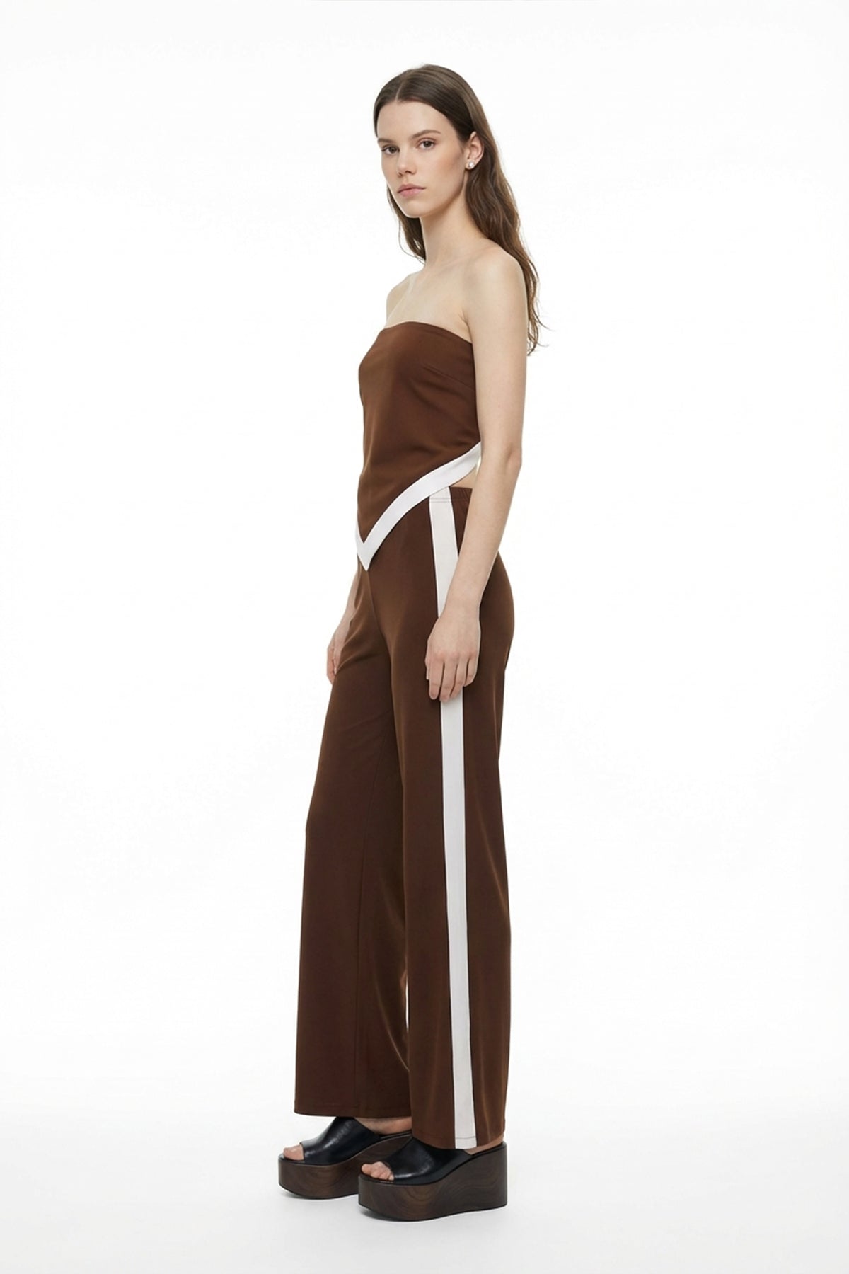Kontrast Yan Şeritli Bol Paça Pantolon Kahverengi