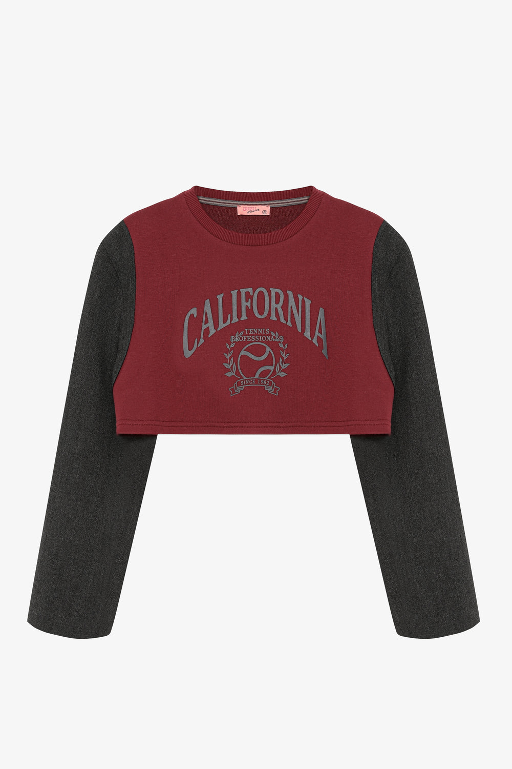 Blazer Garnili Vatkalı Crop Sweatshirt Bordo
