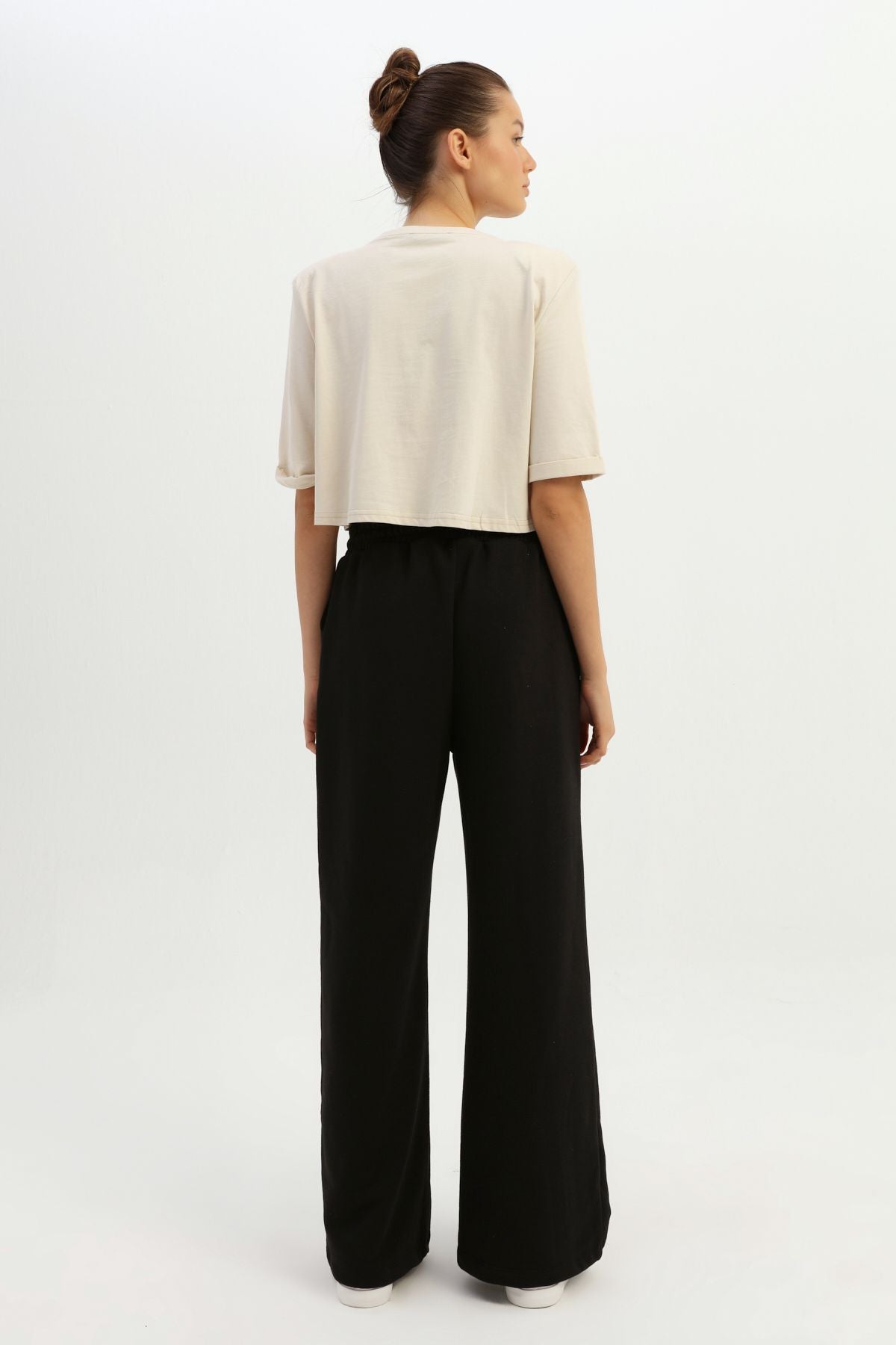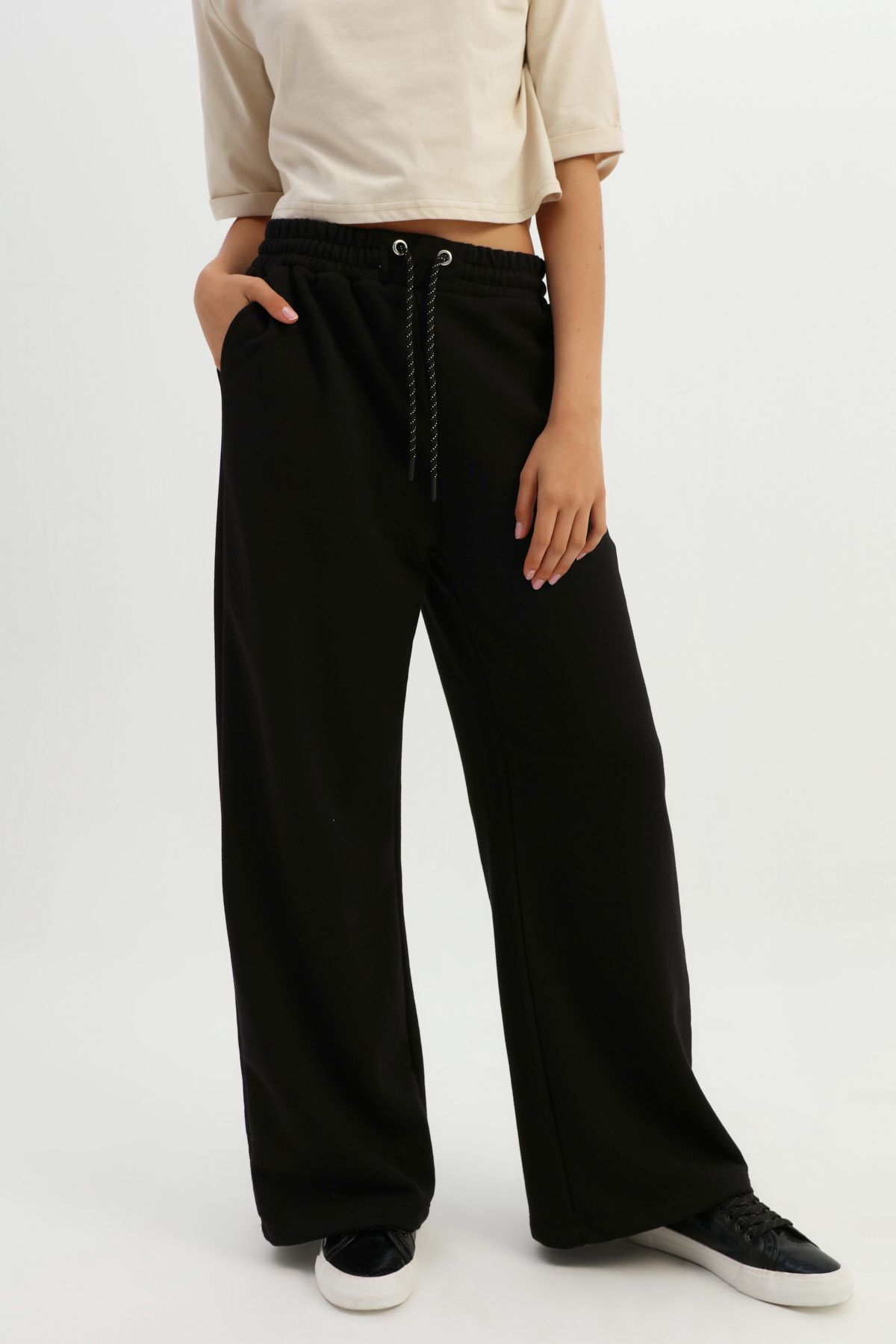 Elastic Waist Wide Leg Tracksuit Black