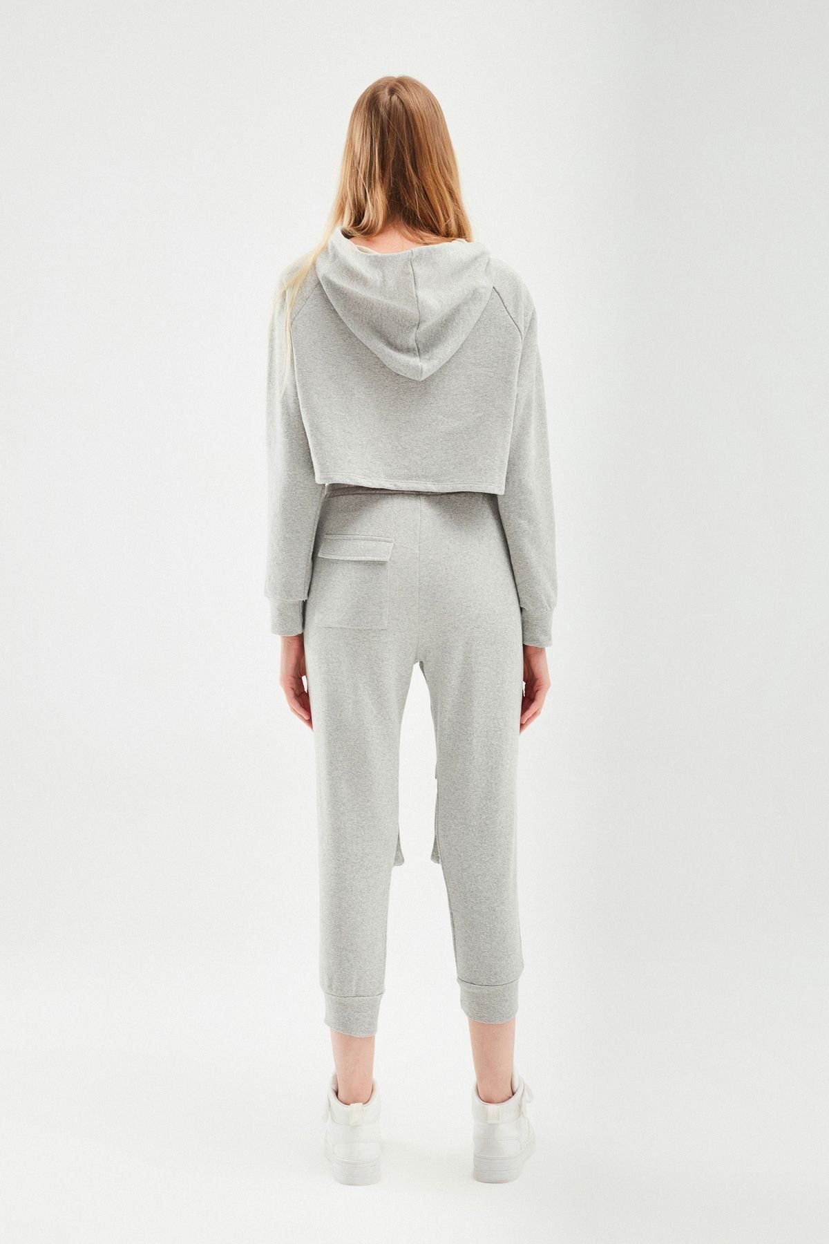 Cotton-blend soft-textured jogger tracksuit is a candidate to be the choice of daily combinations. The high waist jogger tracksuit is animated with the flap pocket detail design on the back and front. It has a tie at the waist and ribbed hems. It has pockets.