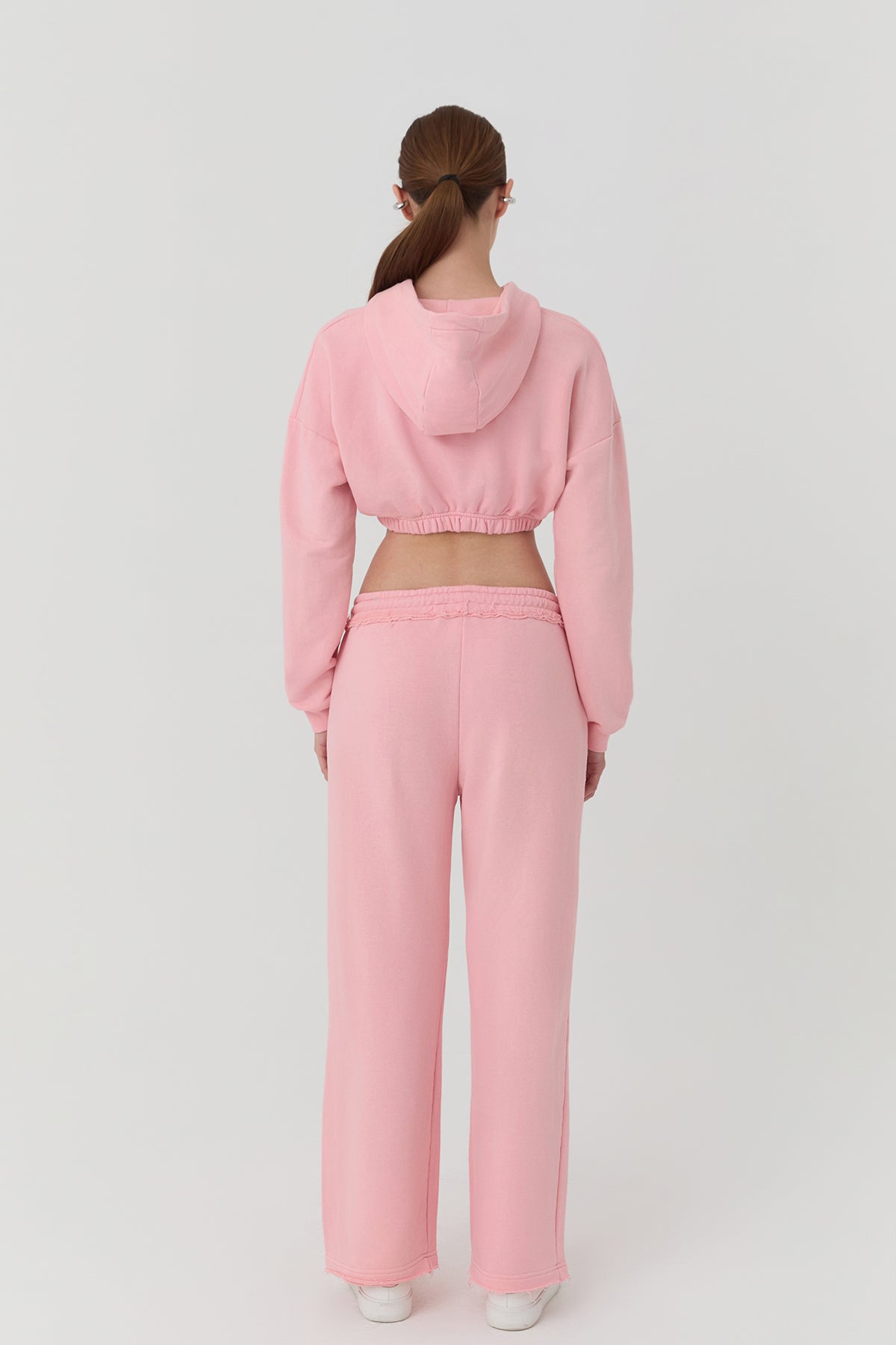 Paçası Yırtık Detaylı Eşofman Pembe