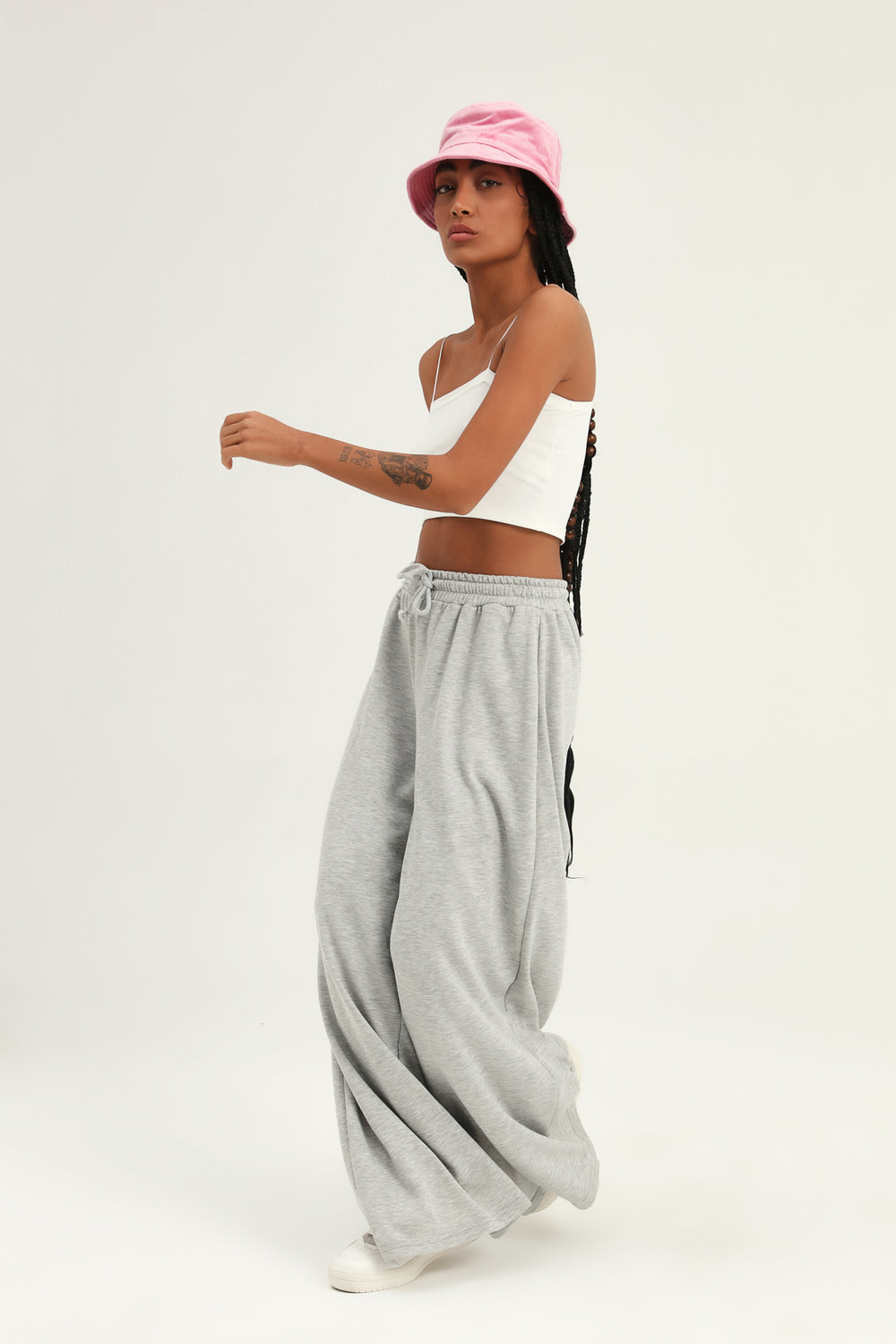 Elastic Waist Wide Leg Tracksuit Light Gray