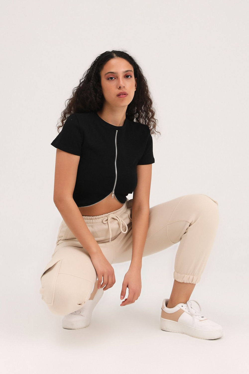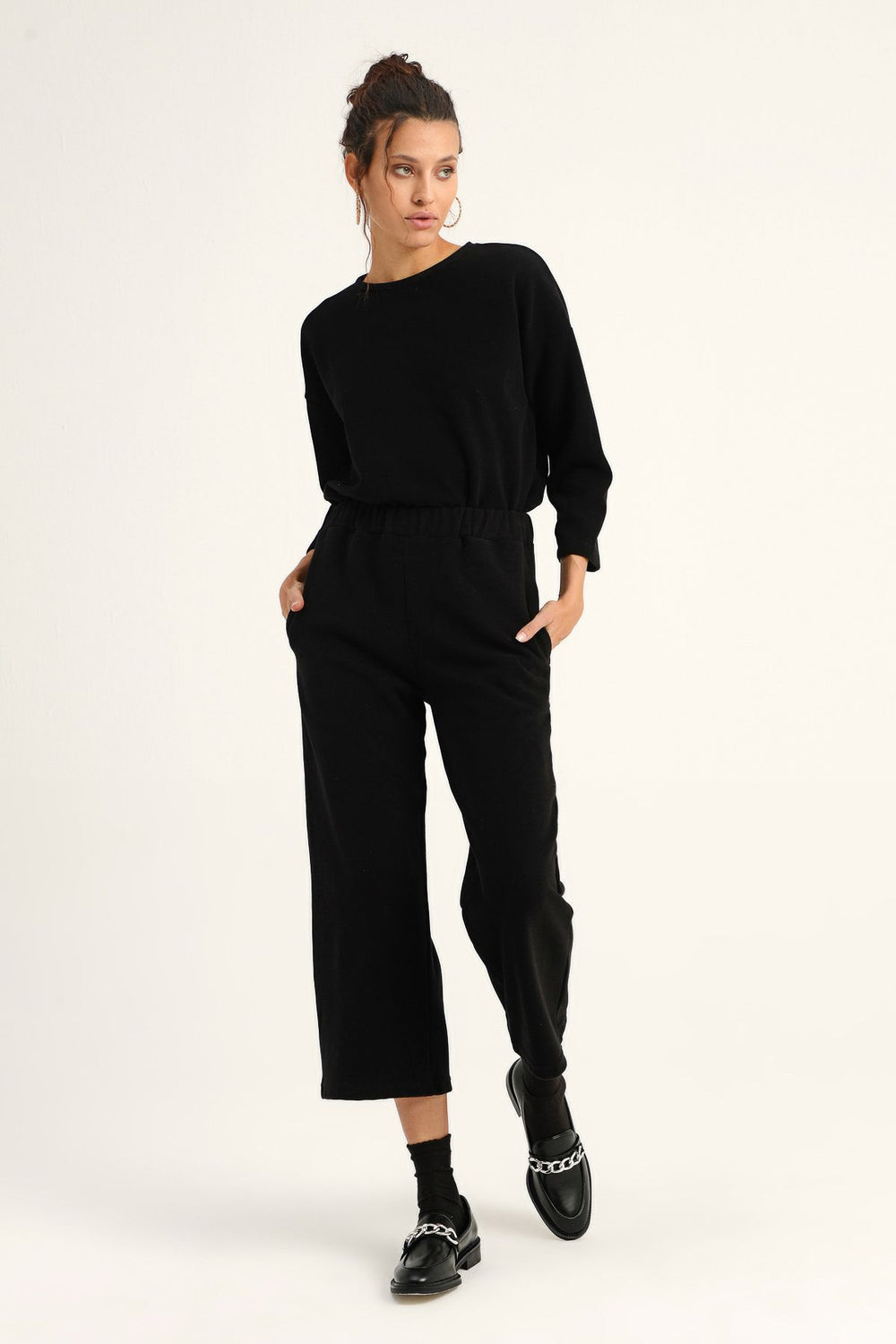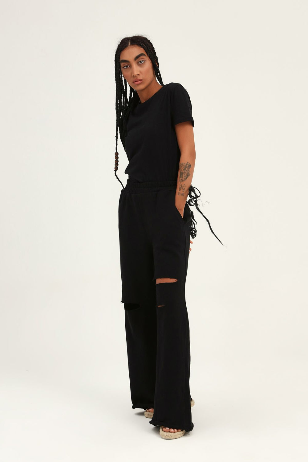 Ripped Detailed Tracksuit Black with Elastic Waist