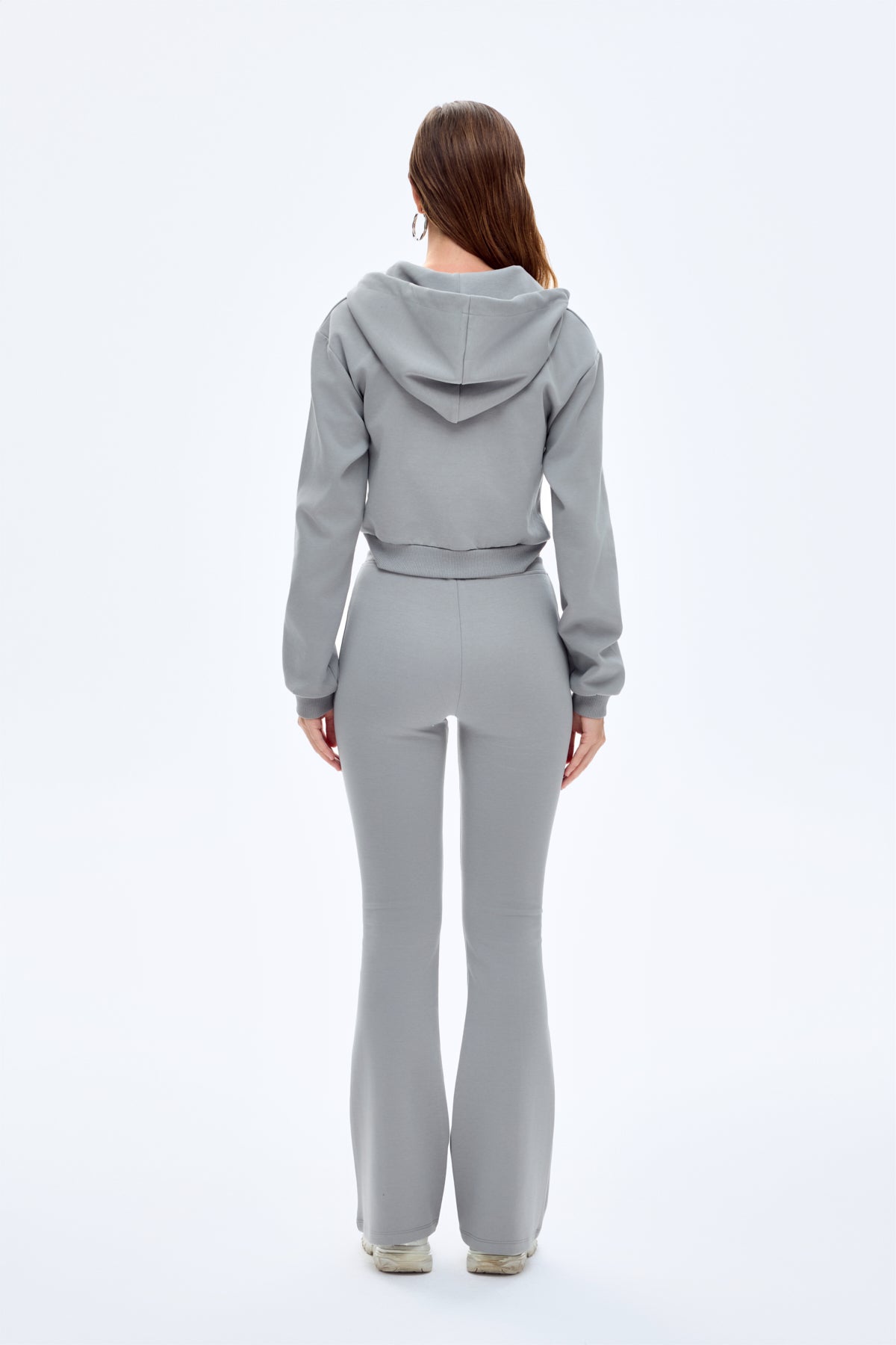 Kapüşonlu Fermuarlı Basic Sweatshirt Gri