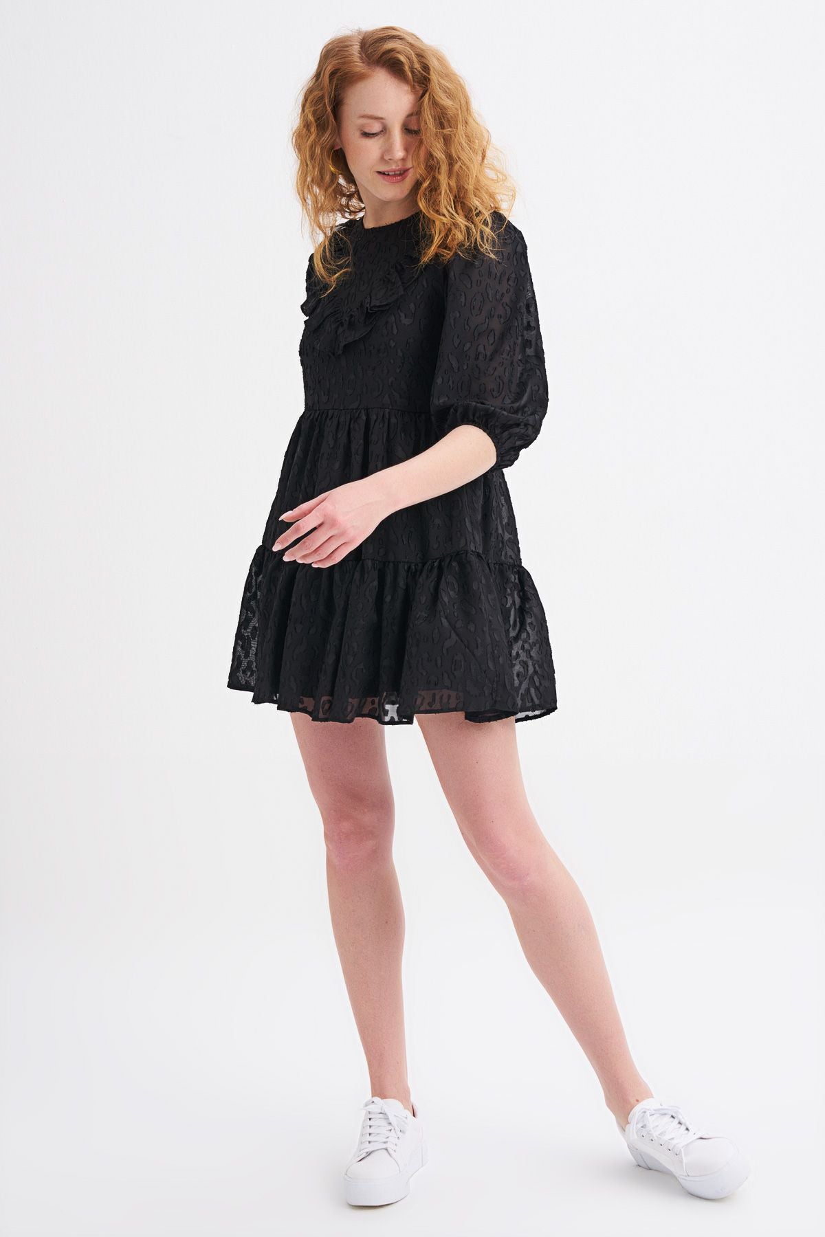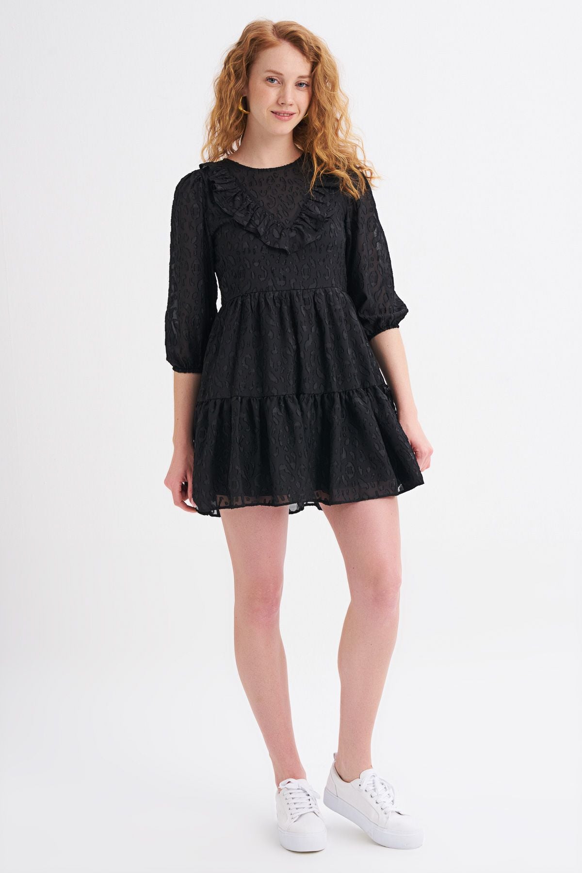 Ruffle Detailed Midi Dress Black