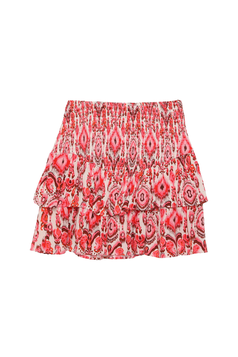 Fırfır Detaylı Desenli Mini Etek Kırmızı