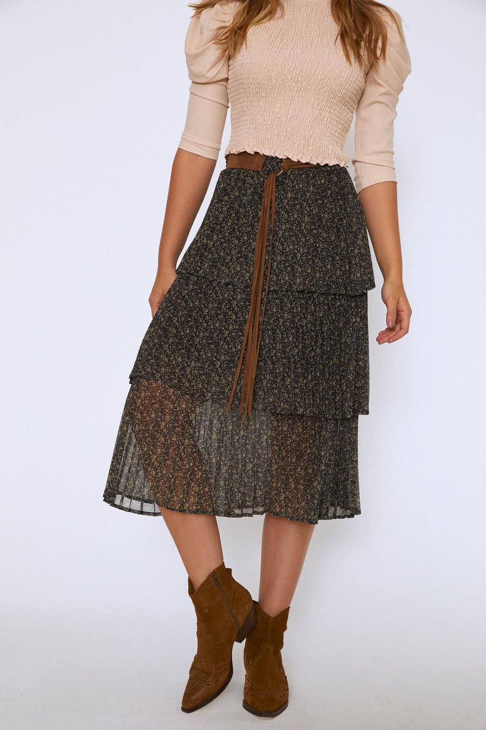 Waist Belt Layered Skirt Khaki
