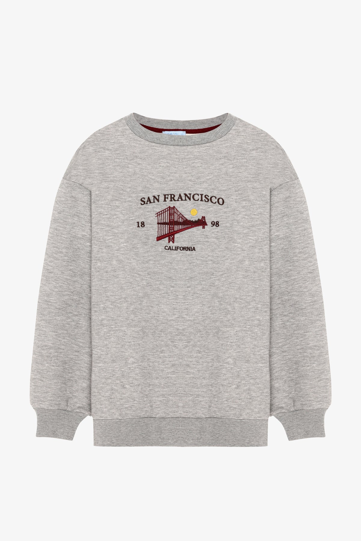 Ön kısmı california nakış baskılı, sırt kısmı açılabilir fermuarlı, uzun kollu, ribana manşet detaylı, şardonlu, oversize sweatshirt.