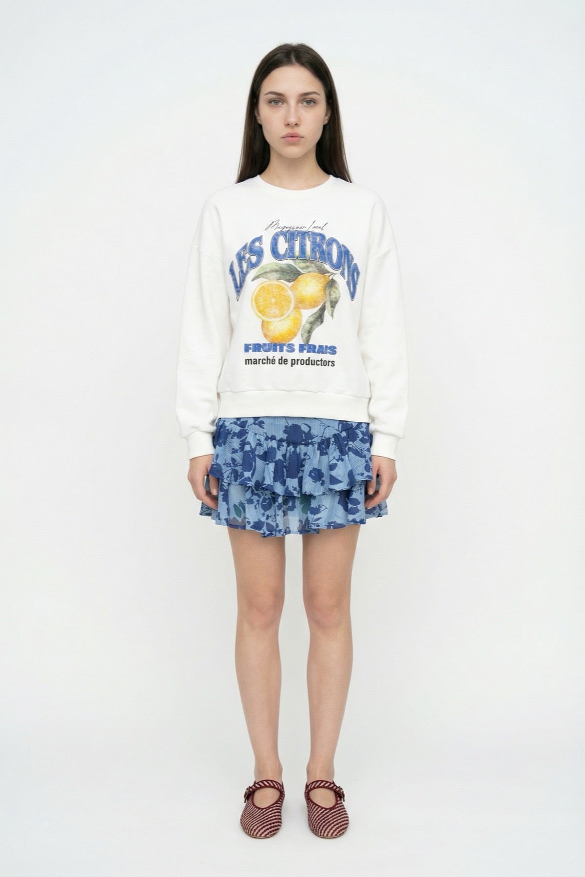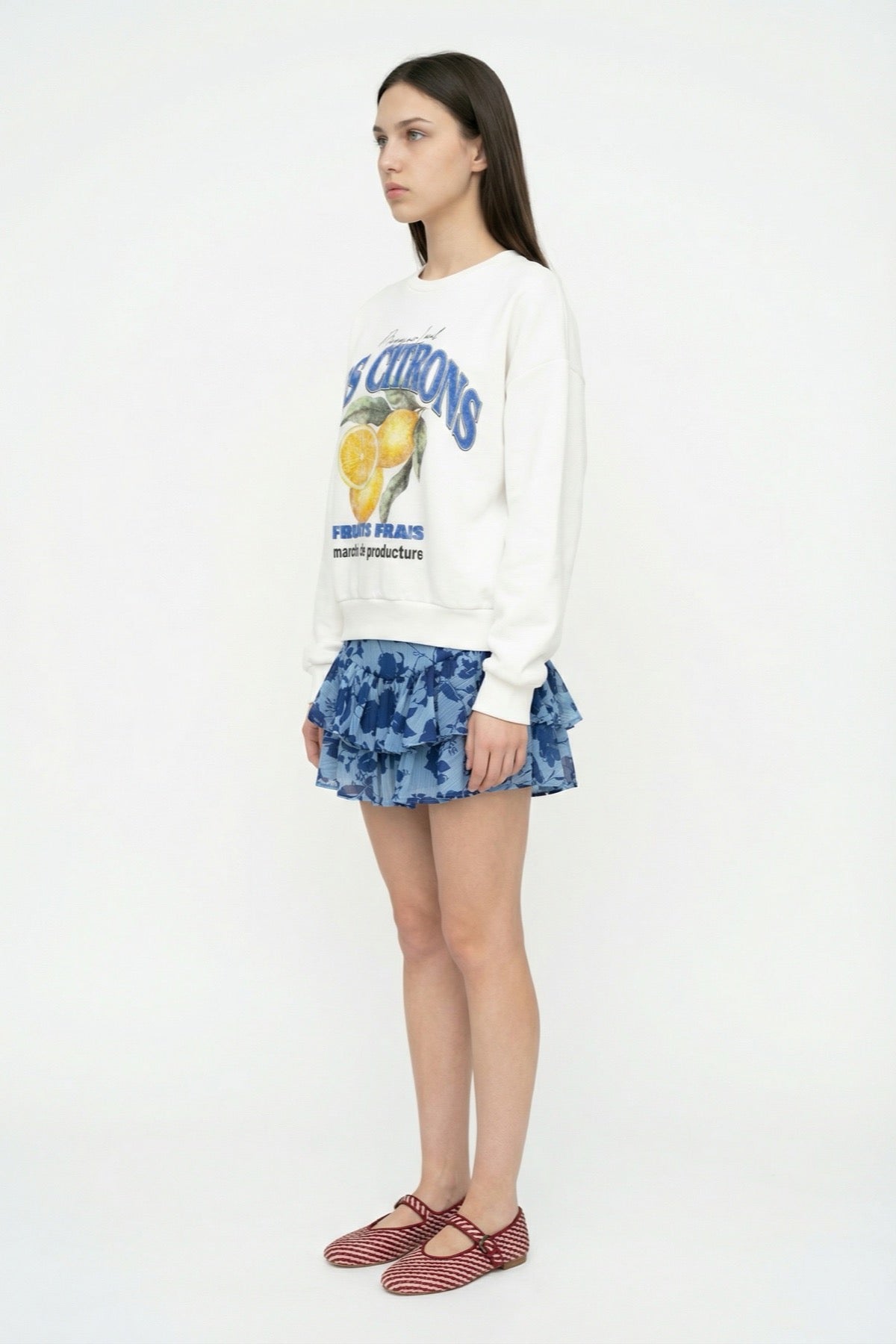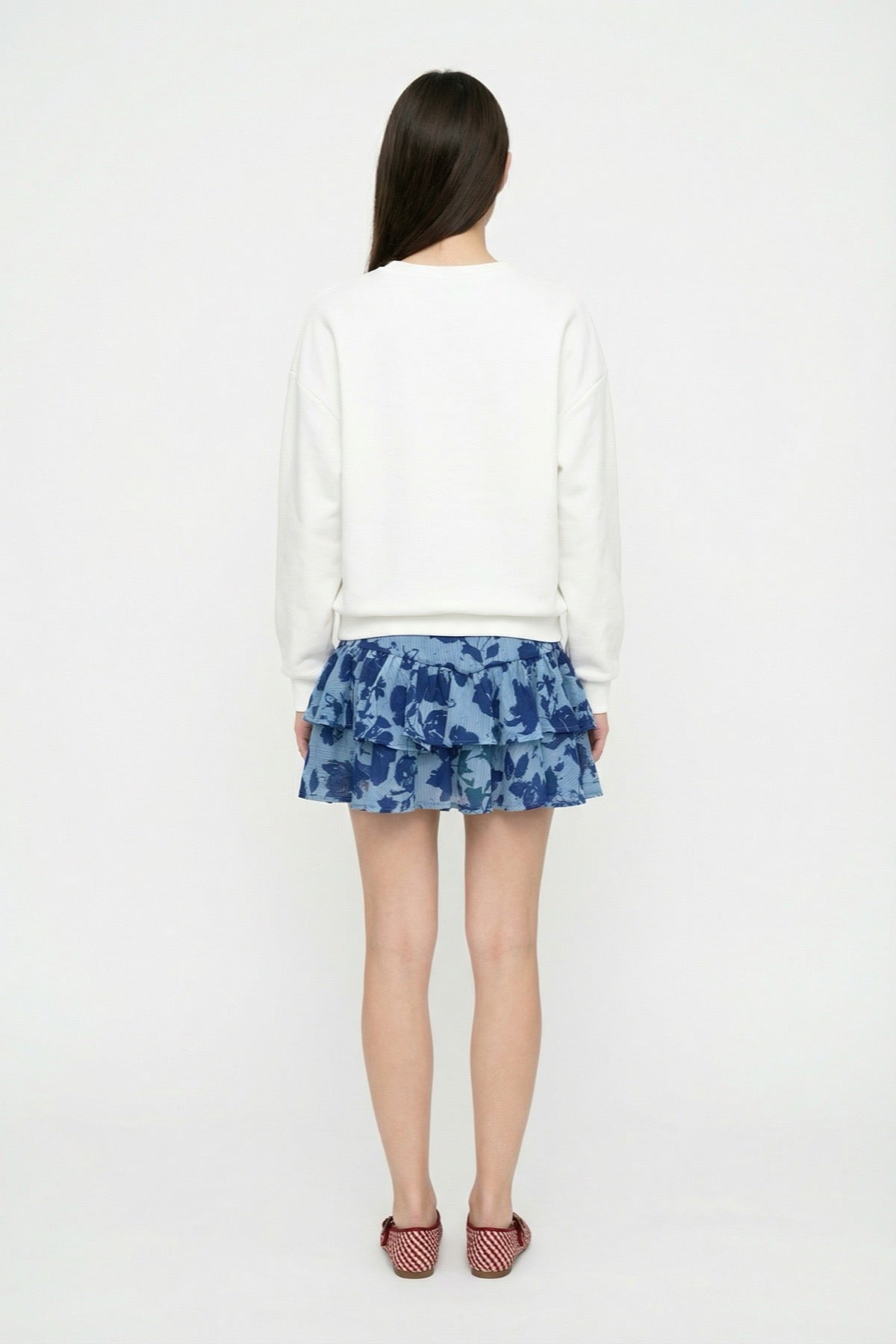 Çiçek Desenli Volanlı Mini Etek Mavi