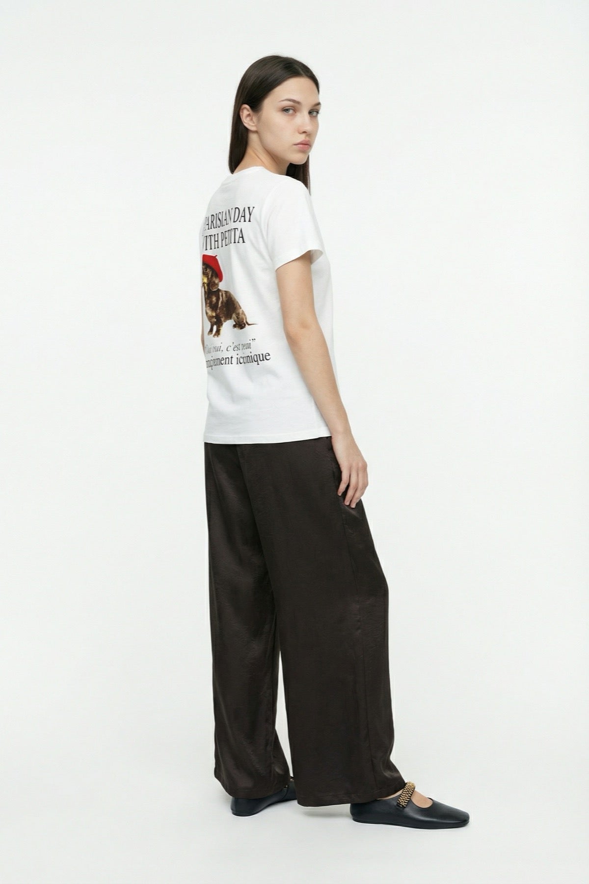 Bisiklet yaka, kısa kollu, ön kısmı yazı ve figür baskı detaylı, sırtı büyük köpek baskılı ve yazı detaylı, oversize tişört.
