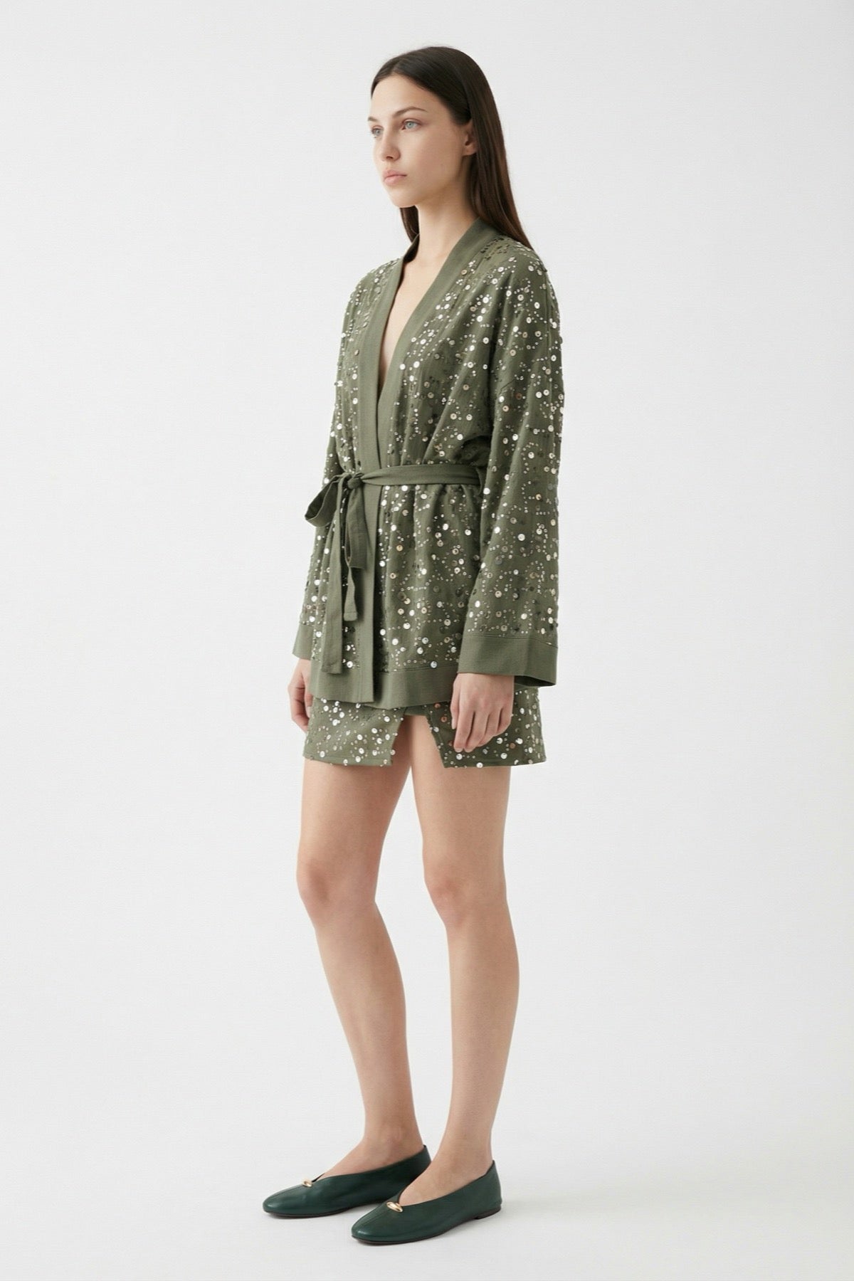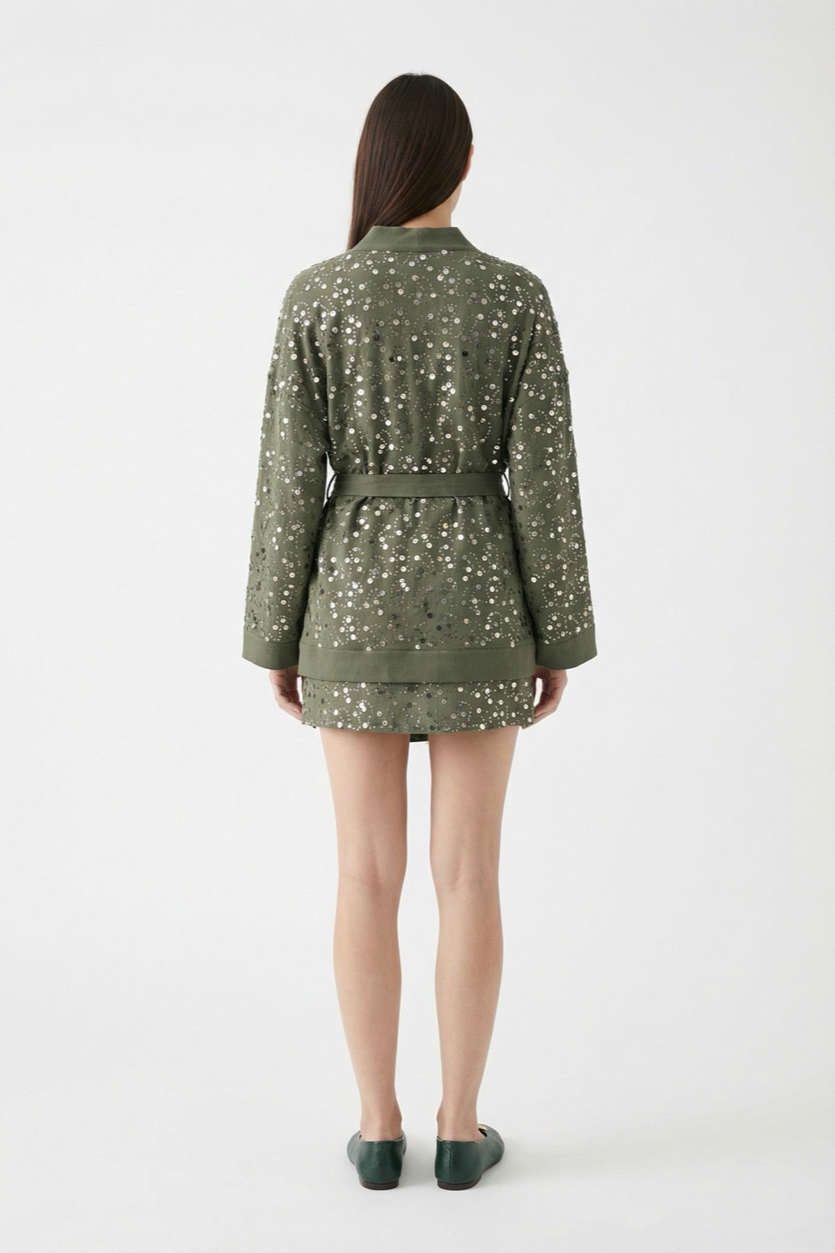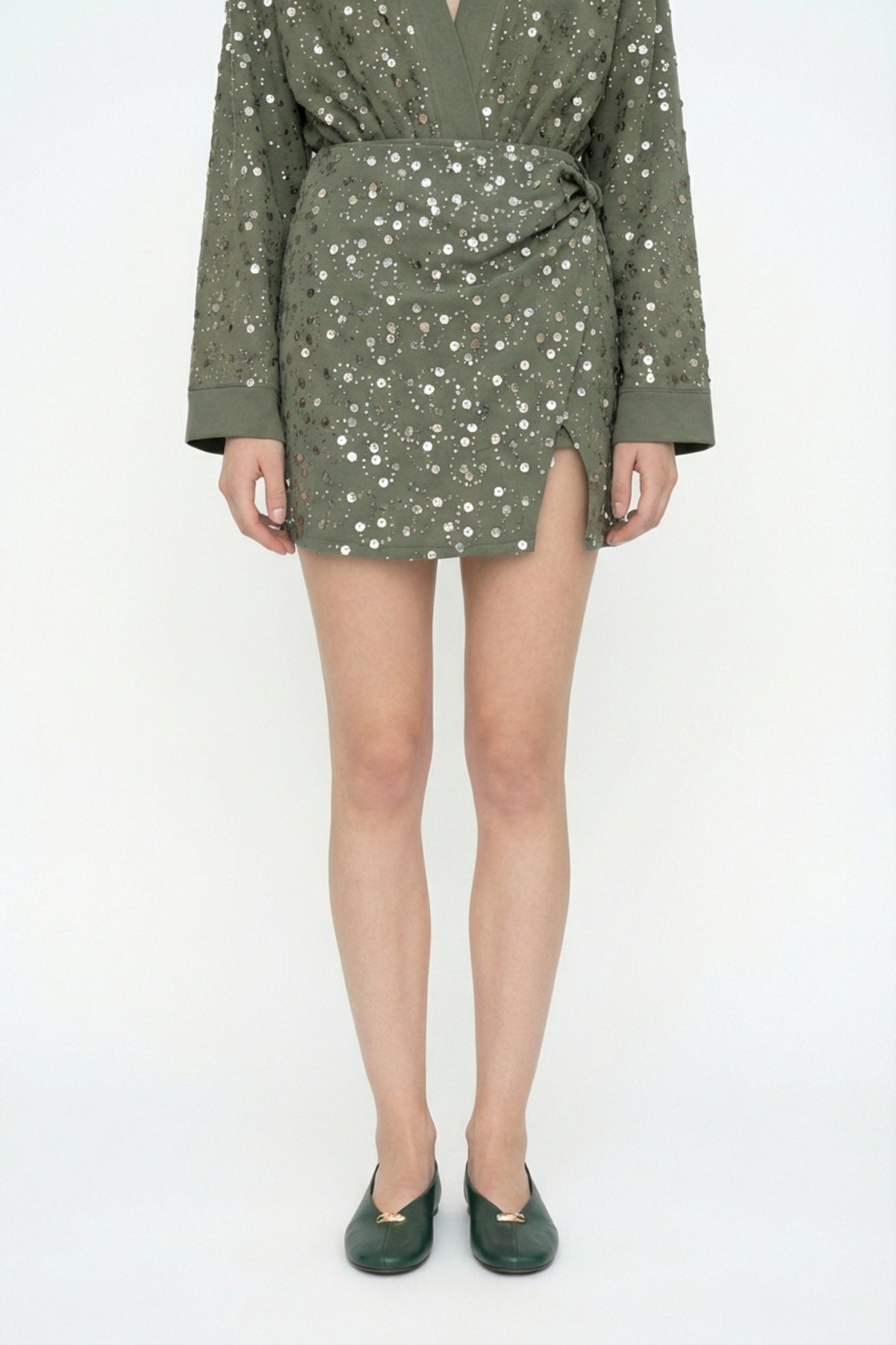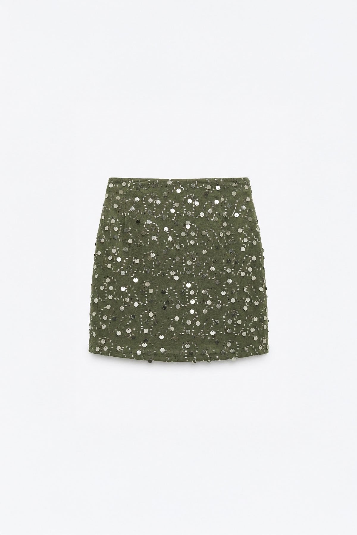 Pul İşlemeli Anvelop Mini Etek Haki