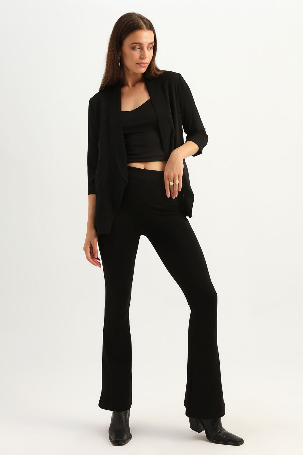 Trojan Sleeve Basic Blouse Black