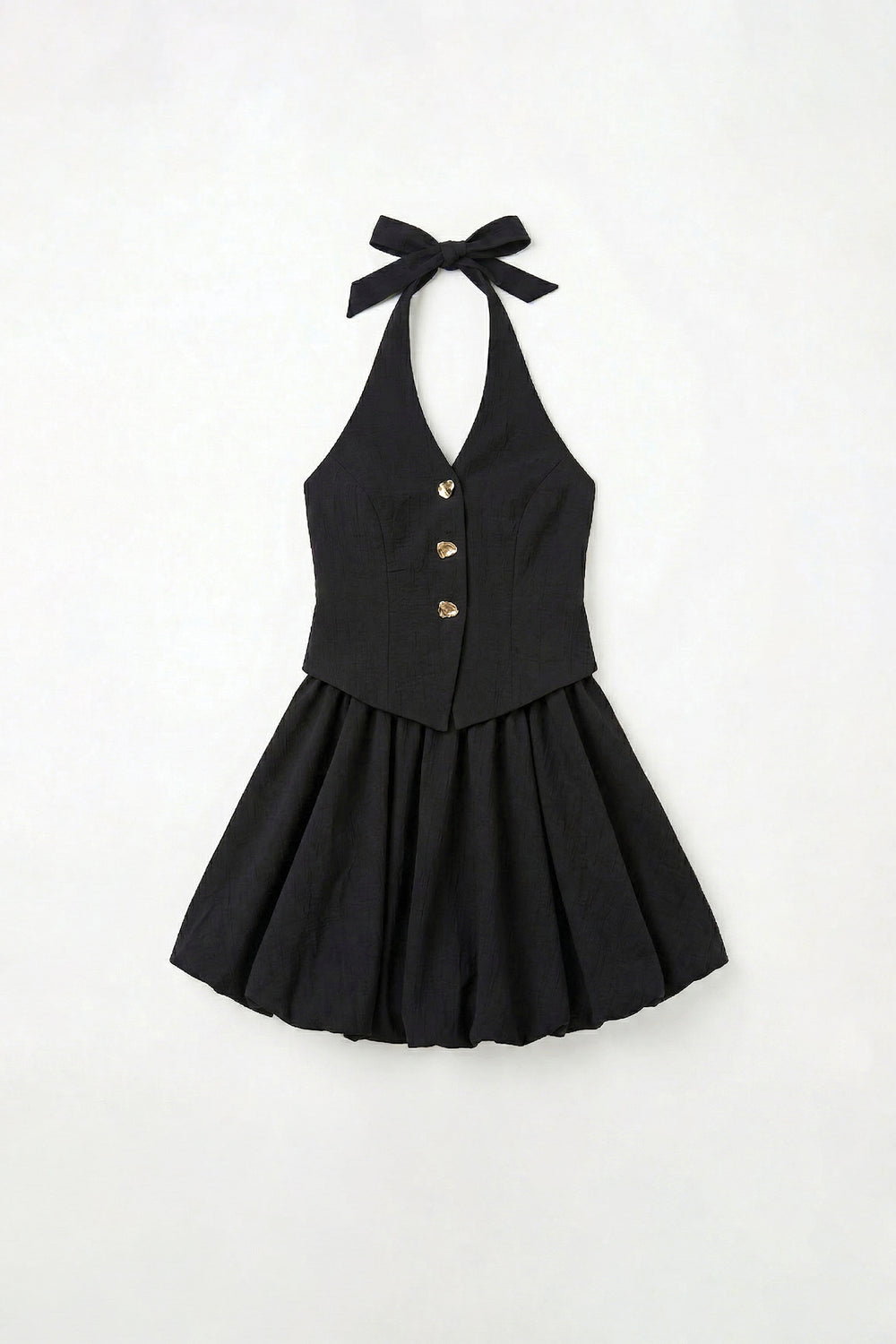 Halter Yaka Yelek Formlu Balon Elbise Siyah