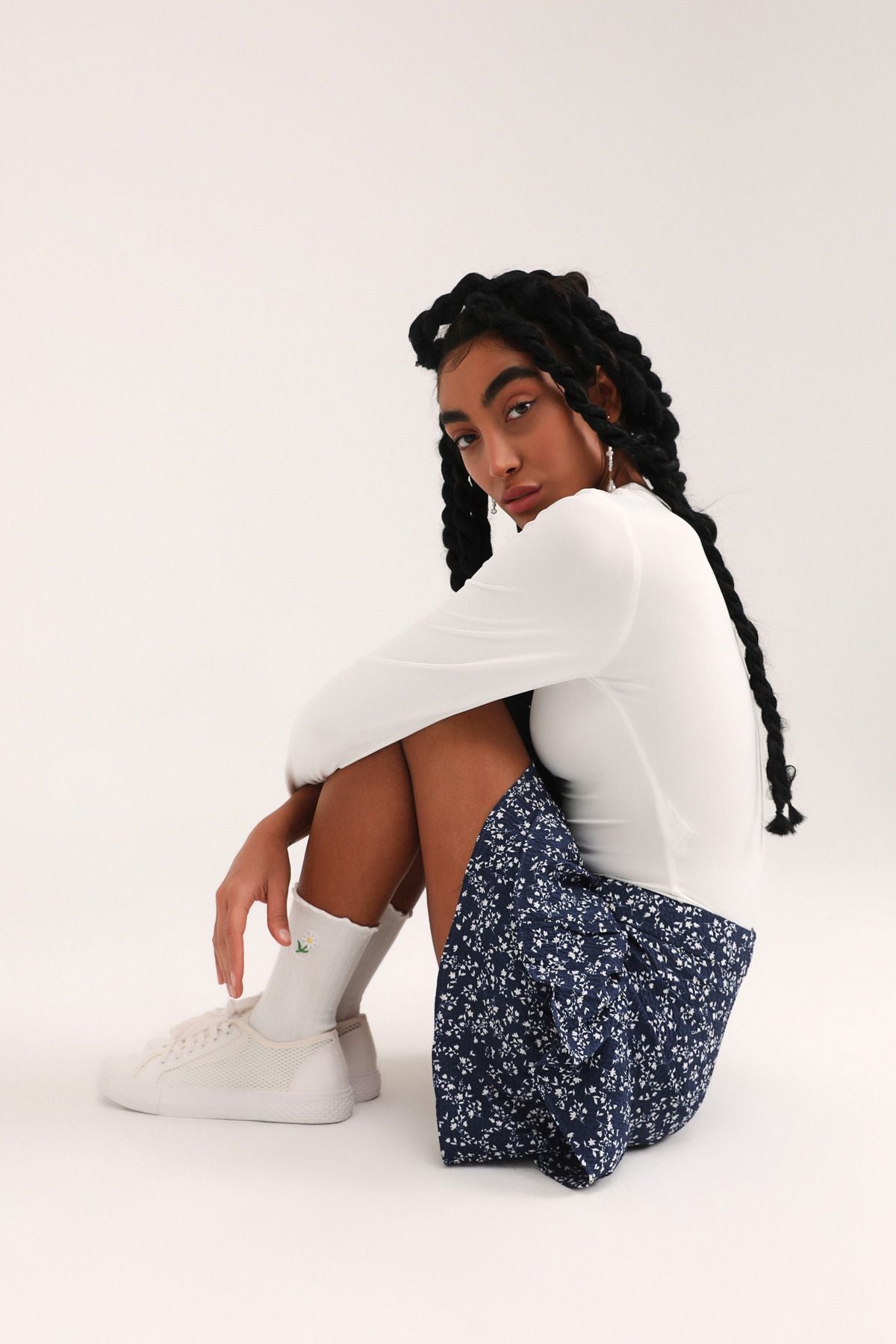 The patterned mini skirt model is waiting to be discovered with its vibrant and eye-catching frill details… While adding movement to your day with the frilly mini skirt model, you can balance your combination with basic pieces that will calm it down. It's only a matter of time before you find the perfect match with basic crop top models, low-cut t-shirts or bodysuits! 😊
