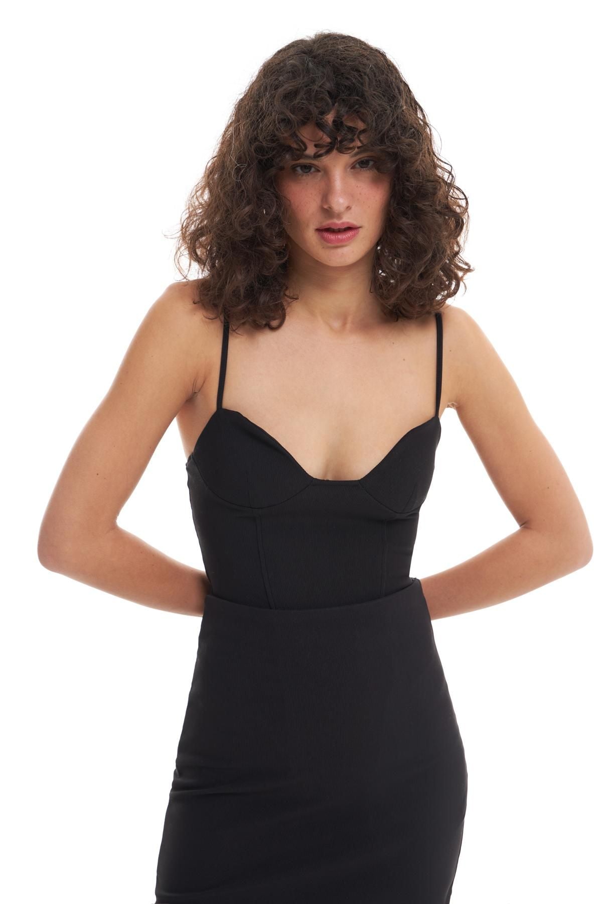 Chest Detailed Bodysuit Black