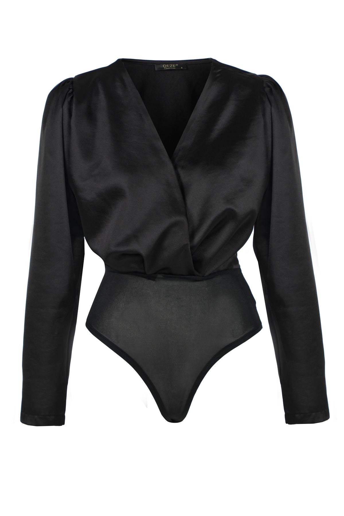 Double Breasted Satin Bodysuit Black