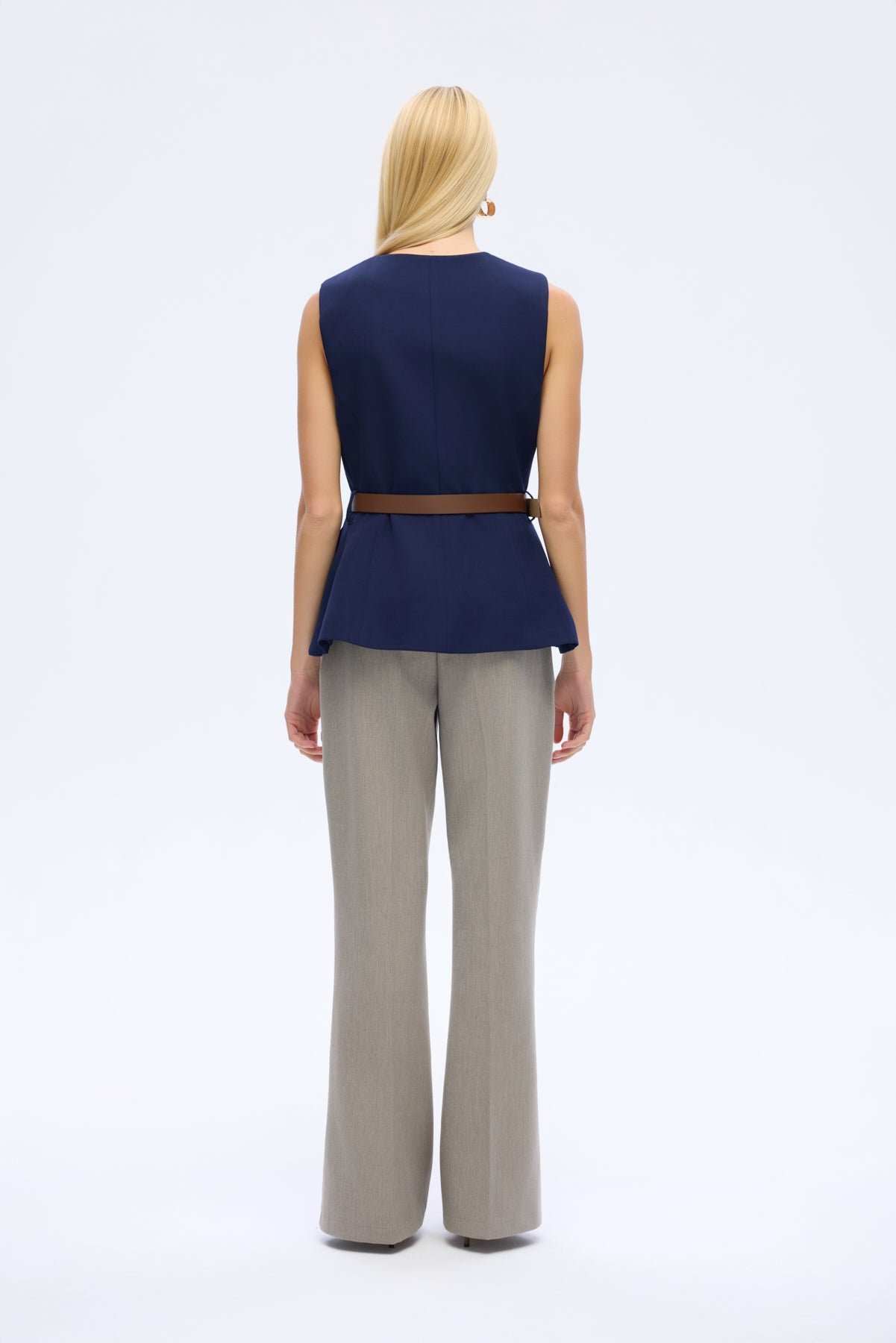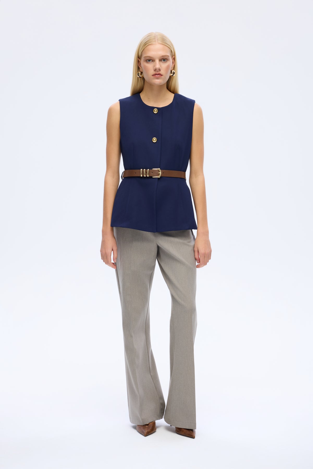 Kemer Aksesuarlı Düğmeli Kolsuz Yelek Lacivert