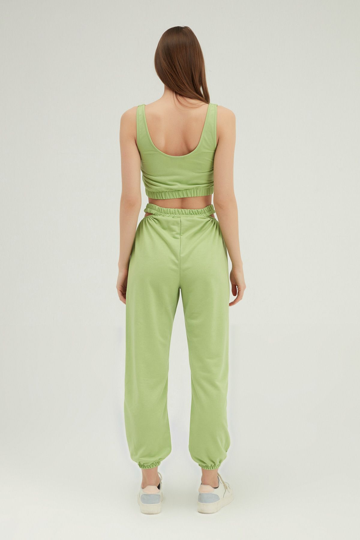 Jogger trousers with elasticated hems will tempt you with their elasticated decollete at the waist. You can use comfortably cut jogger trousers with elastic waistband, in your daily and sports routine.