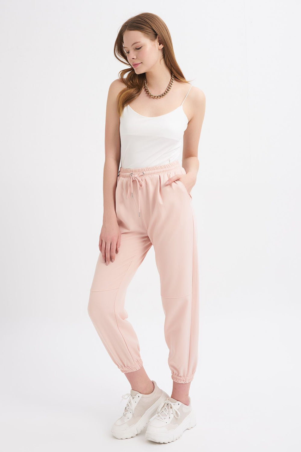 Elastic Waist Jogger Pants Bone