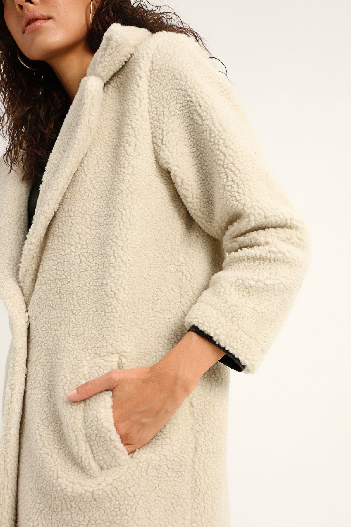 Plush Single Button Coat Ecru