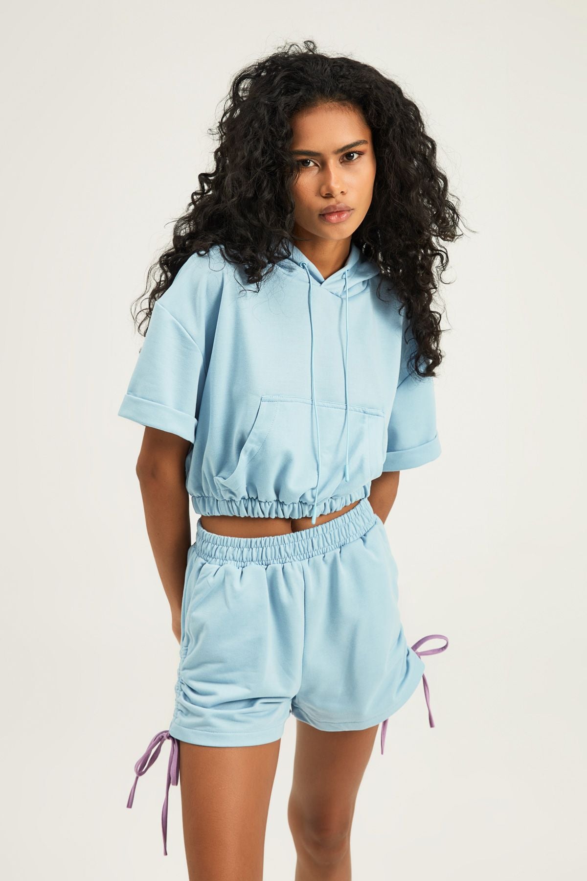 Hooded Short Sleeve Sweatshirt Baby Blue