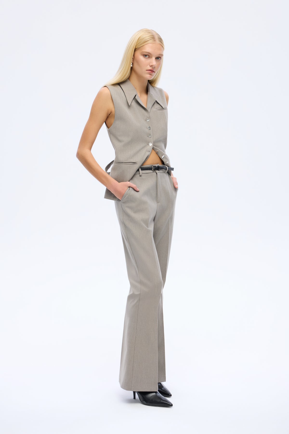İnce Kemerli İspanyol Paça Pantolon Gri