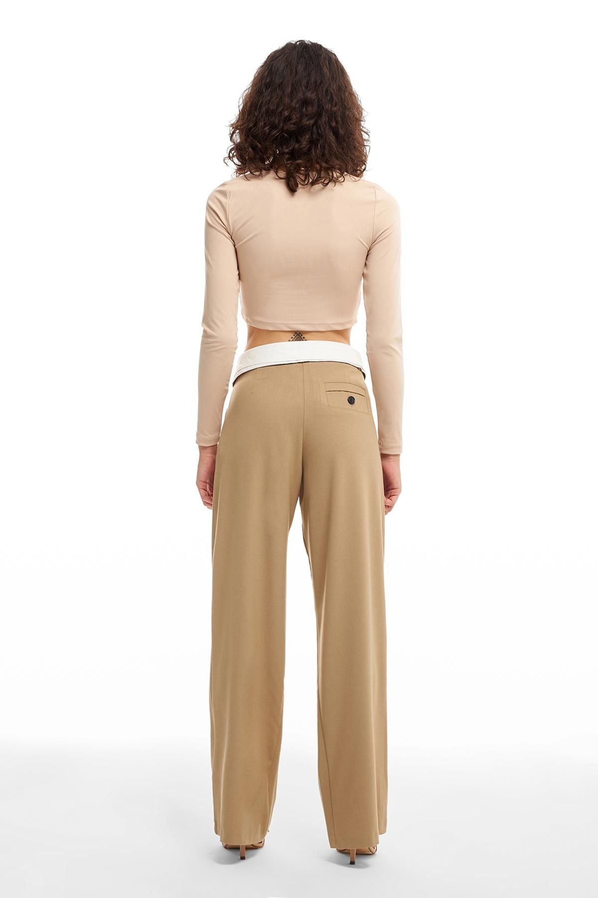 Belt Detailed Fabric Trousers Beige