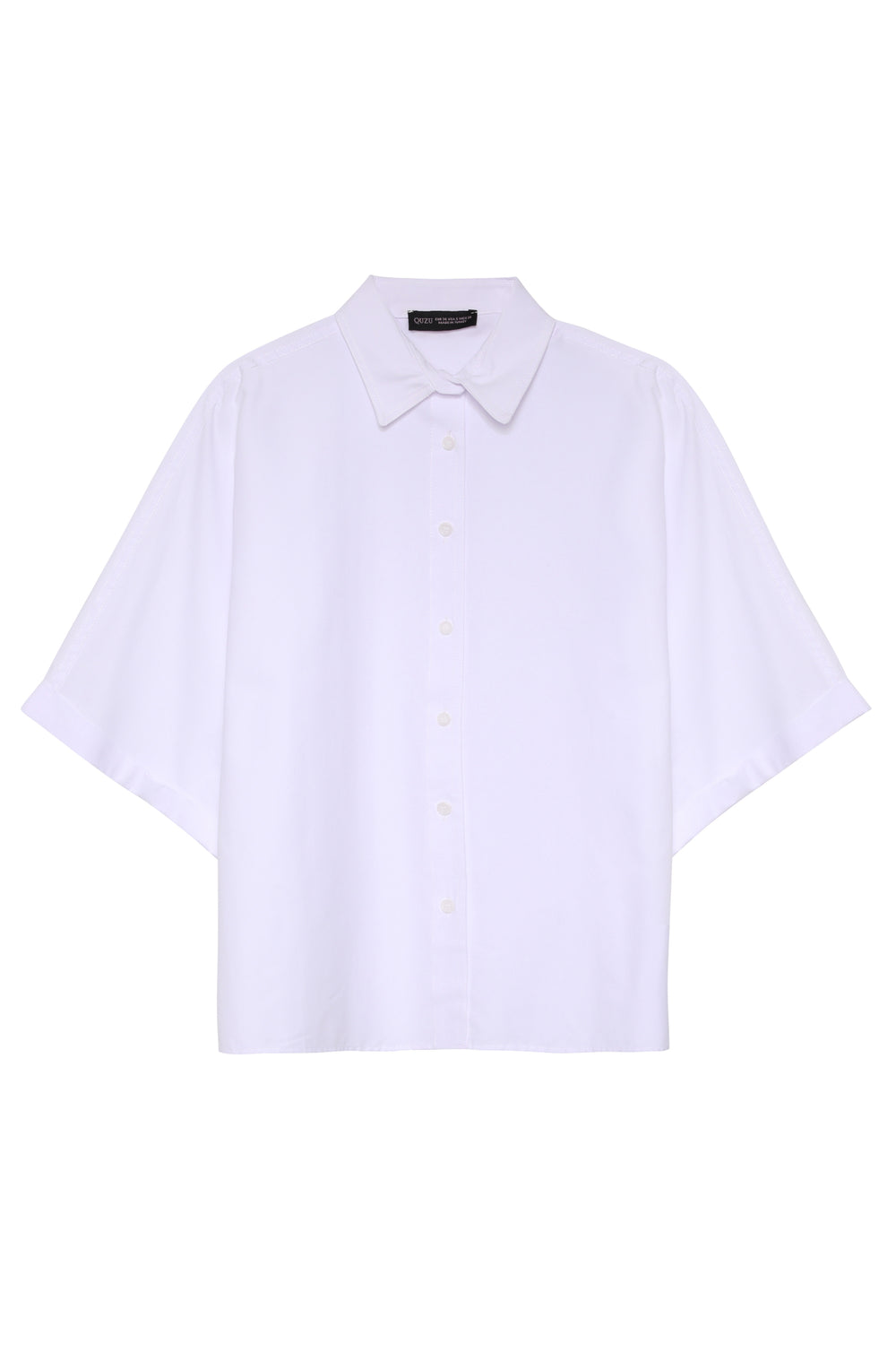 Balon Kol Detaylı Düğmeli Gömlek Beyaz