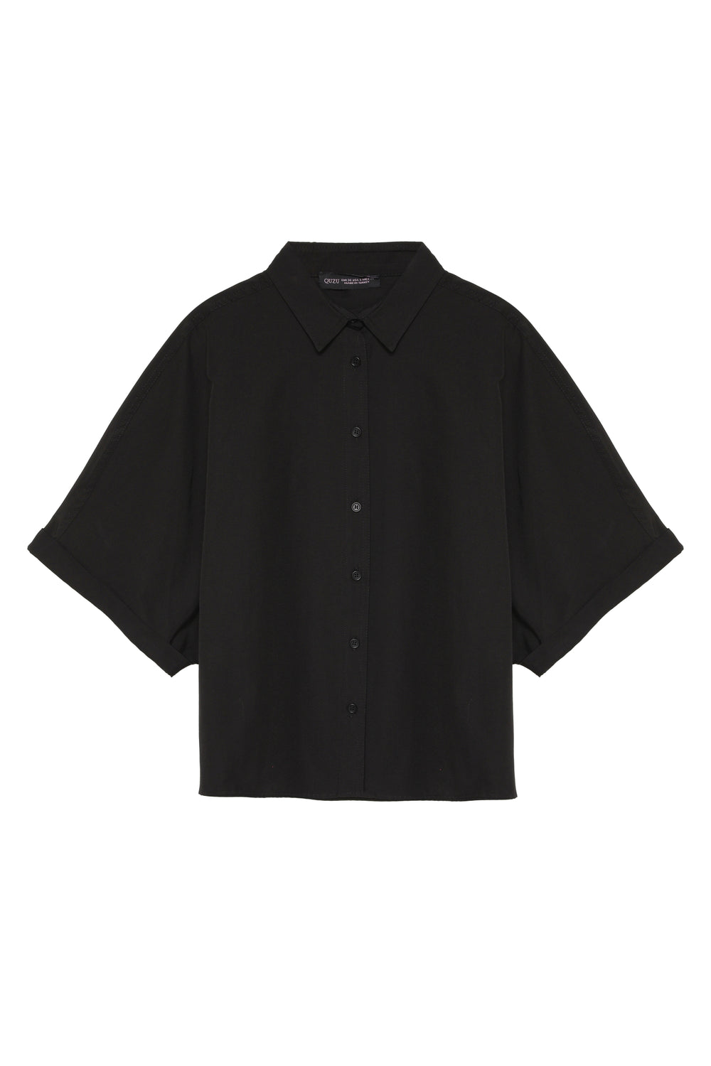 Ajur Detaylı Kısa Kol Keten Gömlek Naturel