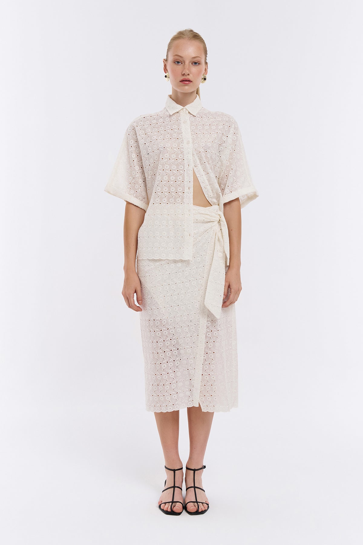 Fisto Detaylı Kısa Kol Gömlek Ekru