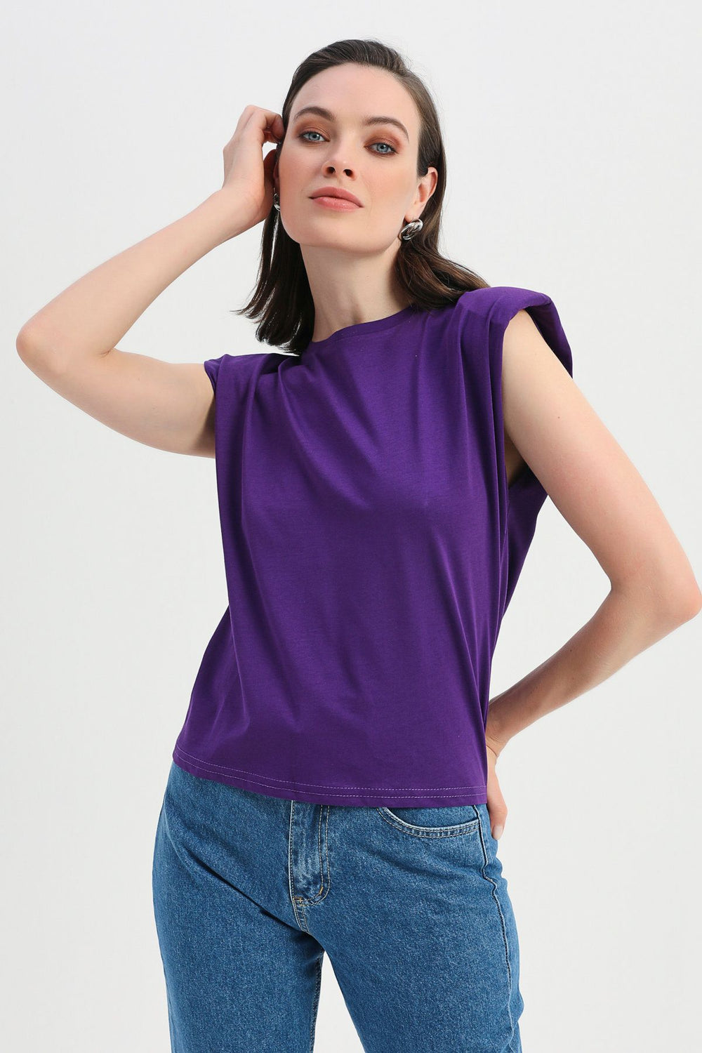 Padded Sleeveless Basic T-Shirt Purple