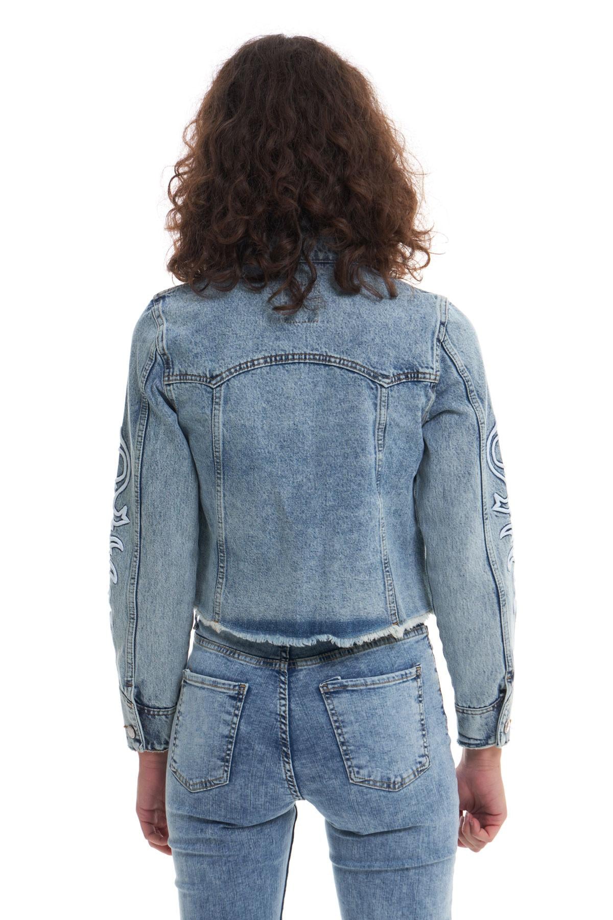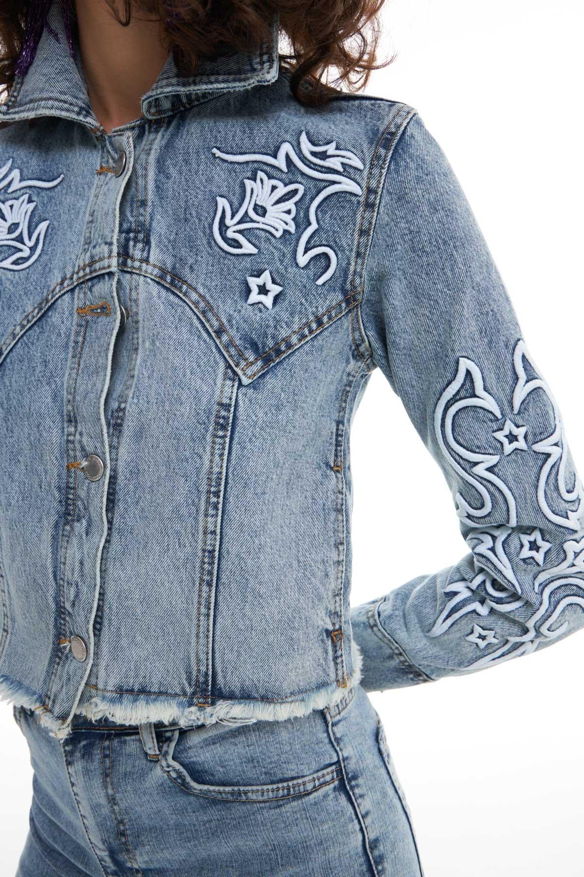 Embroidery Detailed Denim Jacket Ice Blue
