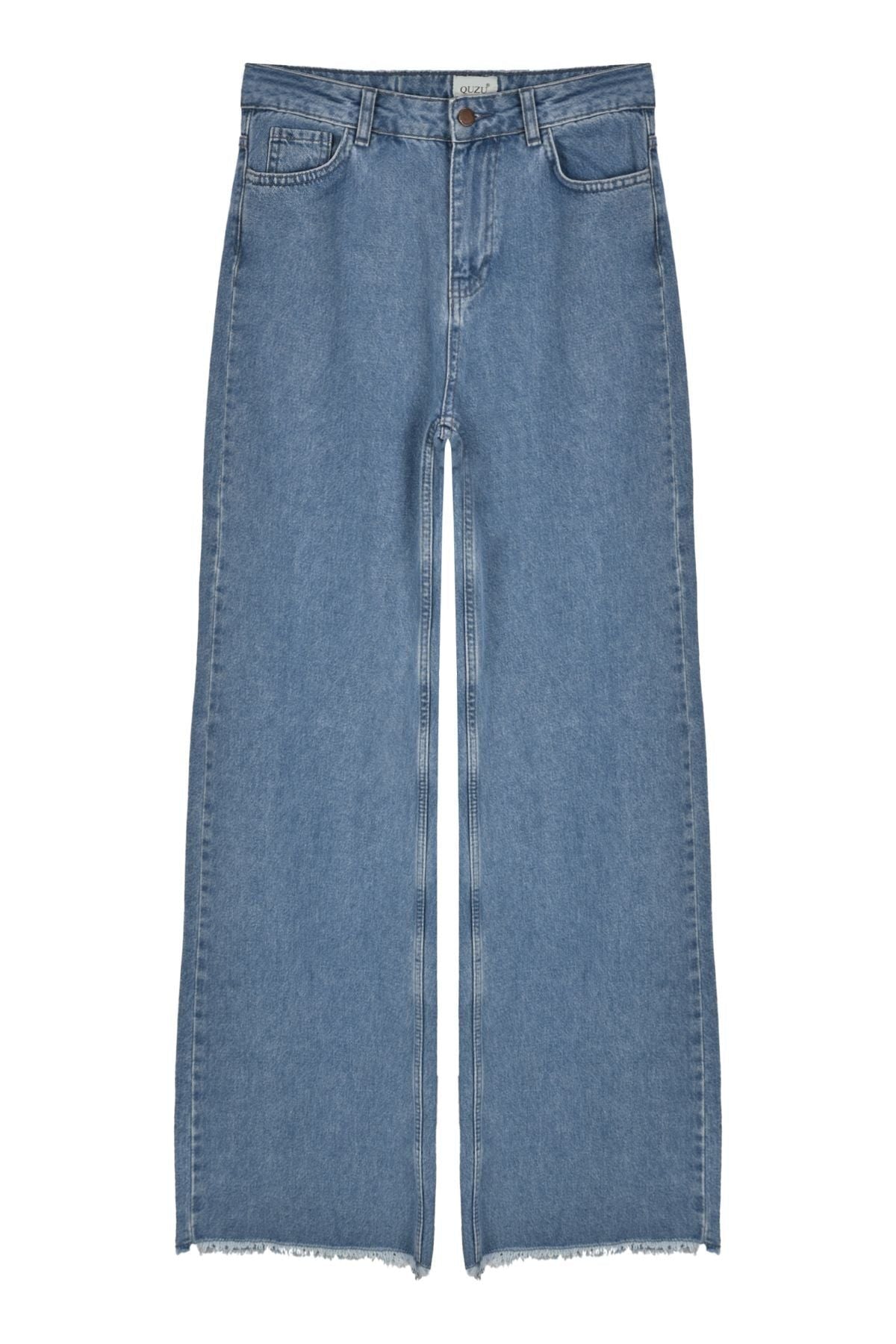 If you want a different style in jeans, high waist jeans with tassel detail on the legs are exactly the style you are looking for. Wide leg trousers, high waist, zipper and metallic button fastening, front and back pockets.