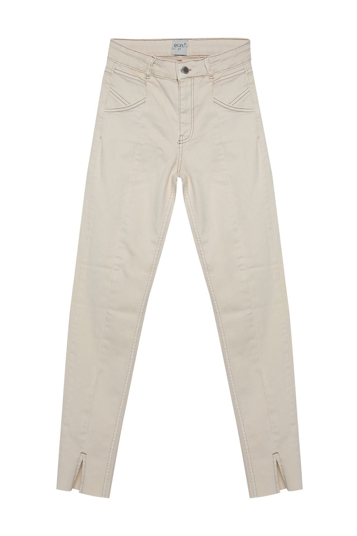 High waist, body-hugging jeans with slit detail on the hems, pockets, pockets, metallic button and zip fastening.