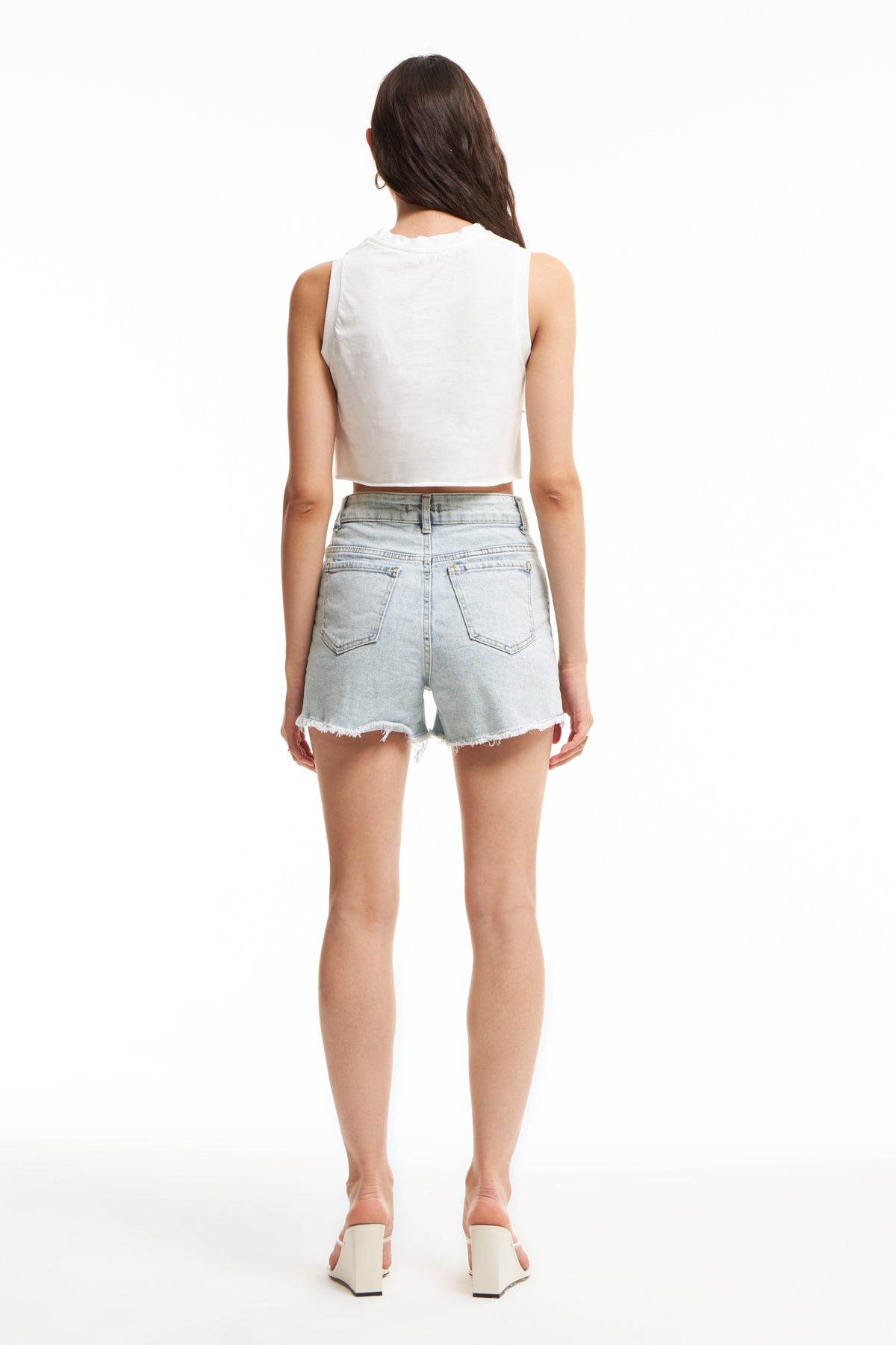 Ripped Detailed Denim Shorts Ice Blue