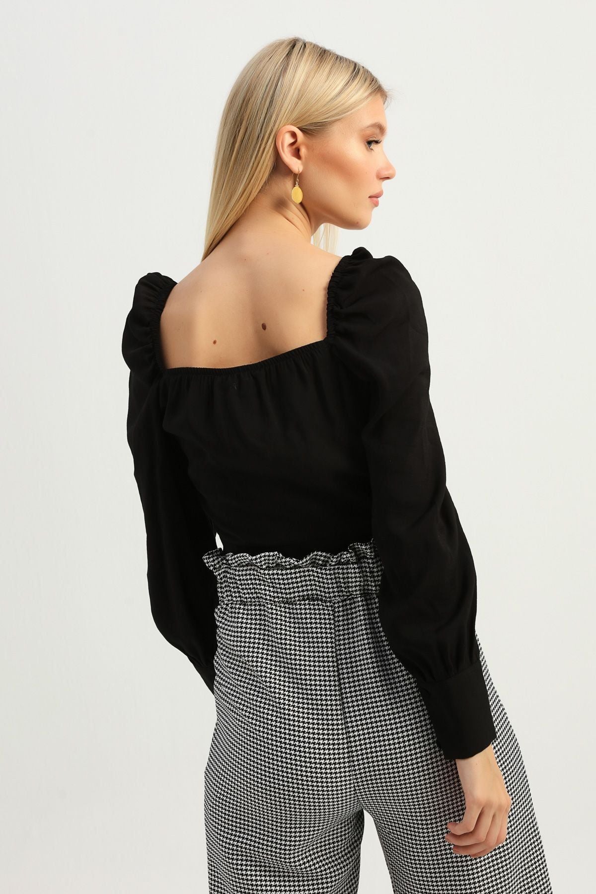 Balloon Sleeve Double Breasted Crop Blouse Black