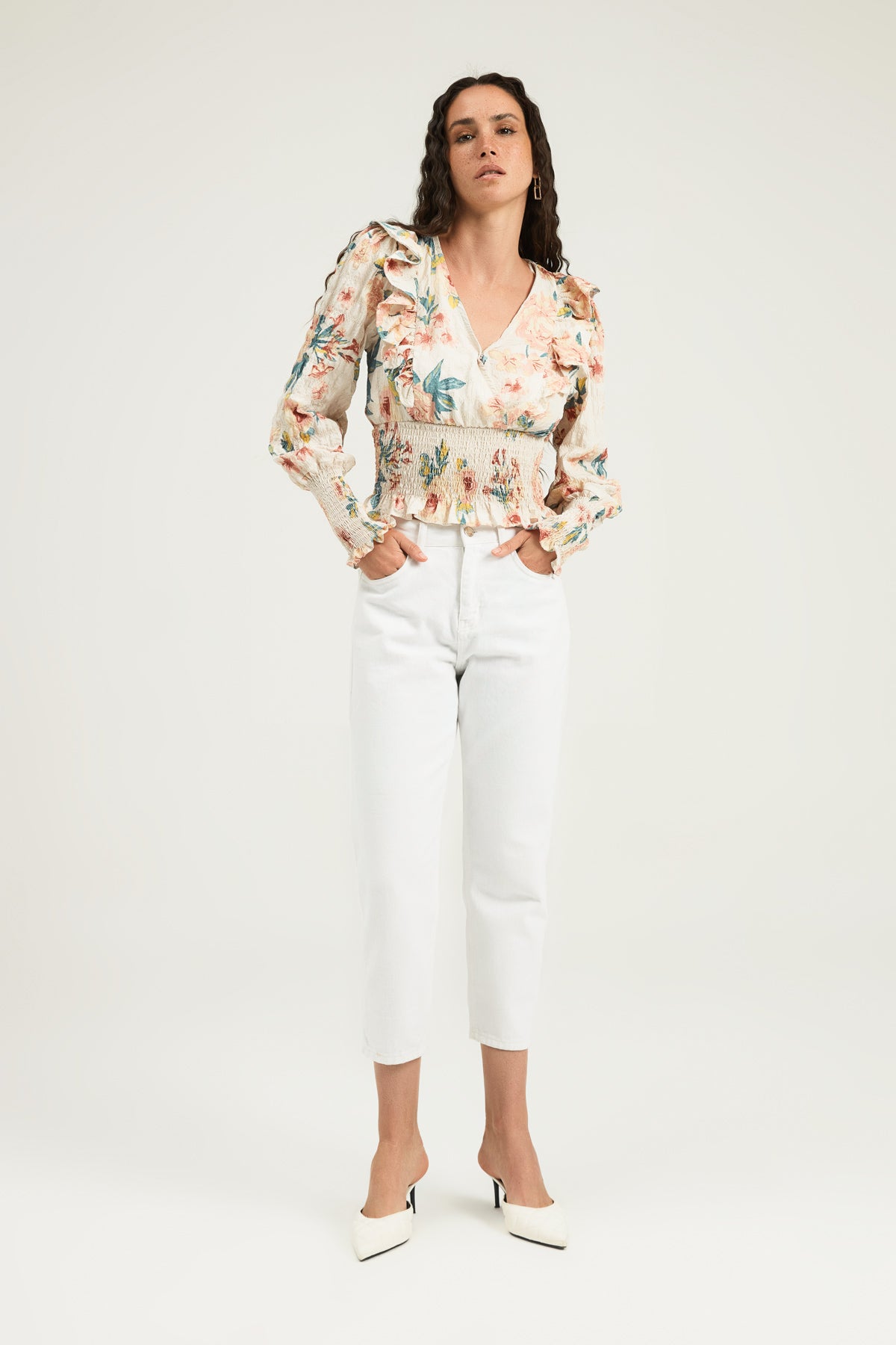 Greet the arrival of spring by making combinations that you will feel the floral effect on all day! The floral double-breasted blouse model, which will adapt to any environment you enter with its surprising details, can be your key piece for stylish looks! The double-breasted blouse that will steal your heart with its fitted structure and frill details that will add movement to your look should be yours! 😊
