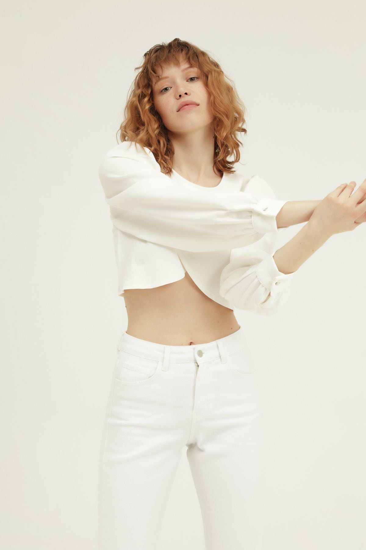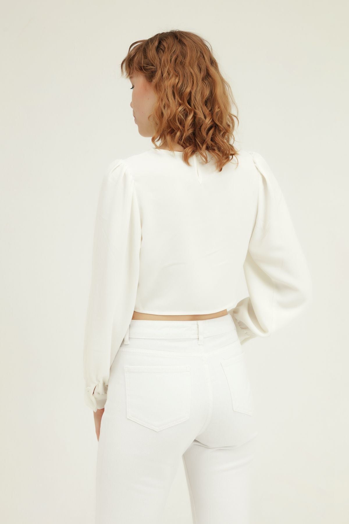 Double Breasted Crop Blouse White