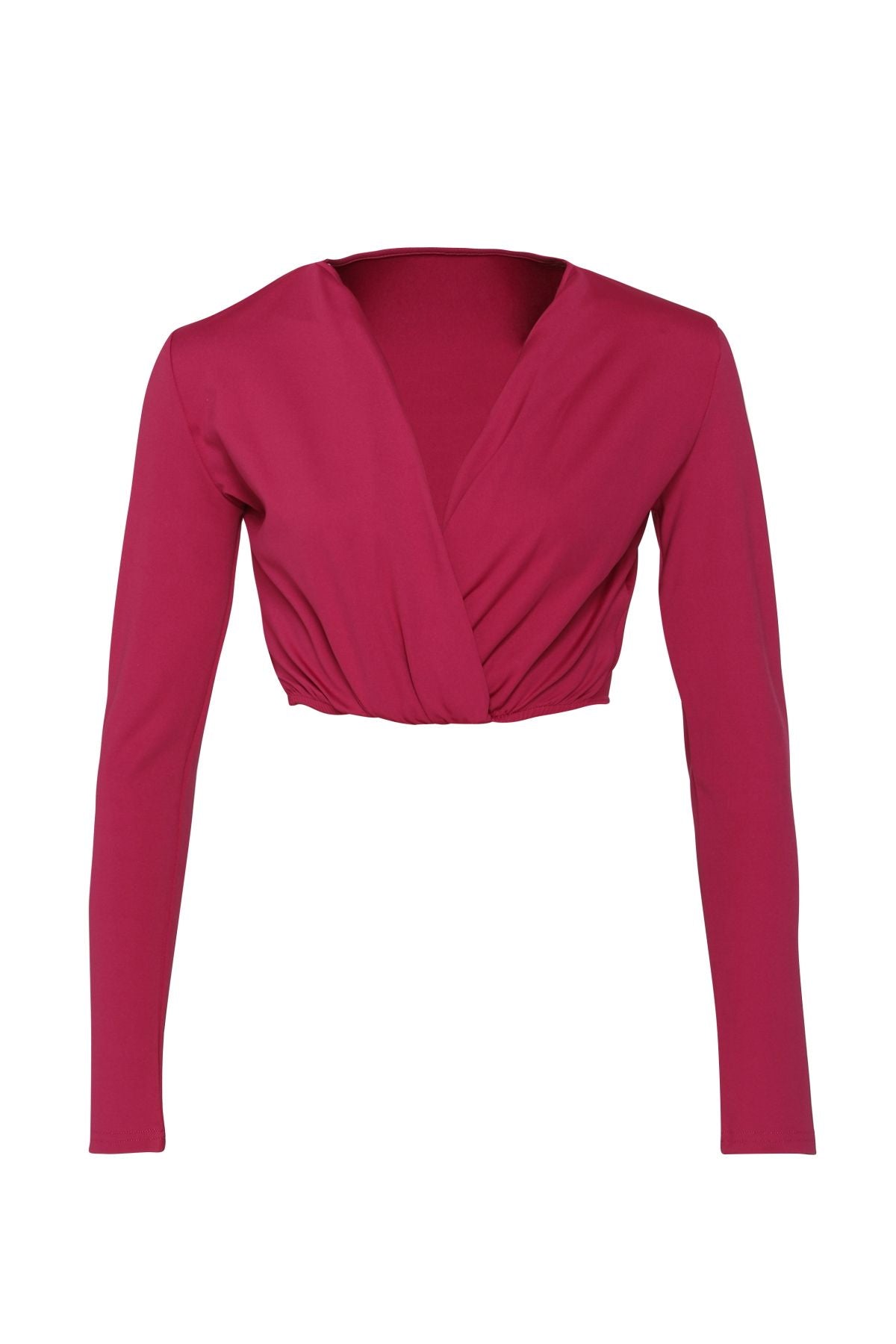Long sleeve, double-breasted, cropped blouse.