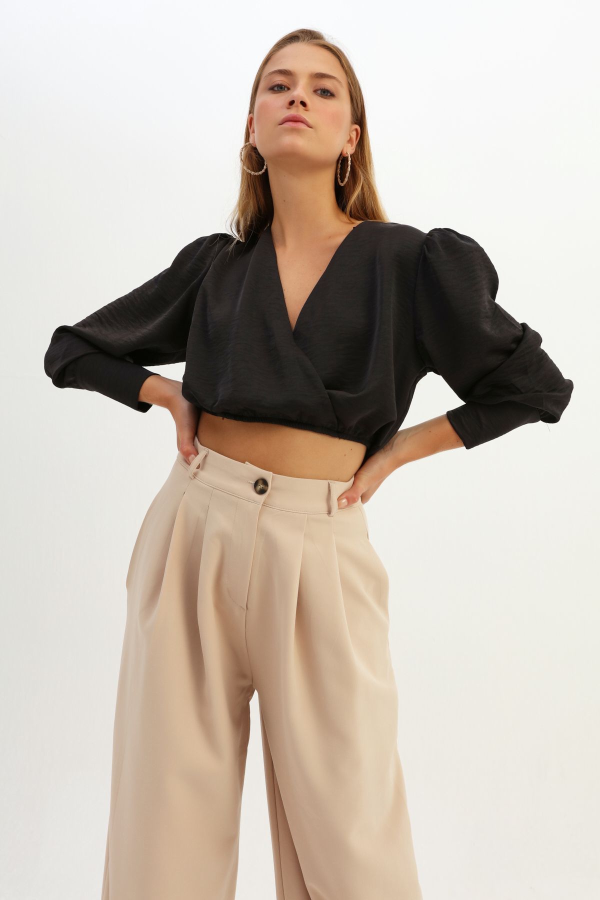It is ready to revive its combinations with its modern form and striking design with vintage details. With different color options, it is a padded crop blouse that will fit all your combinations.