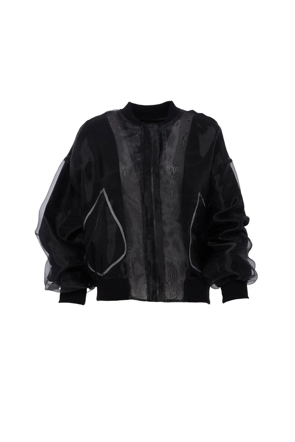 Cep detaylı, uzun kollu, organze tül ceket.