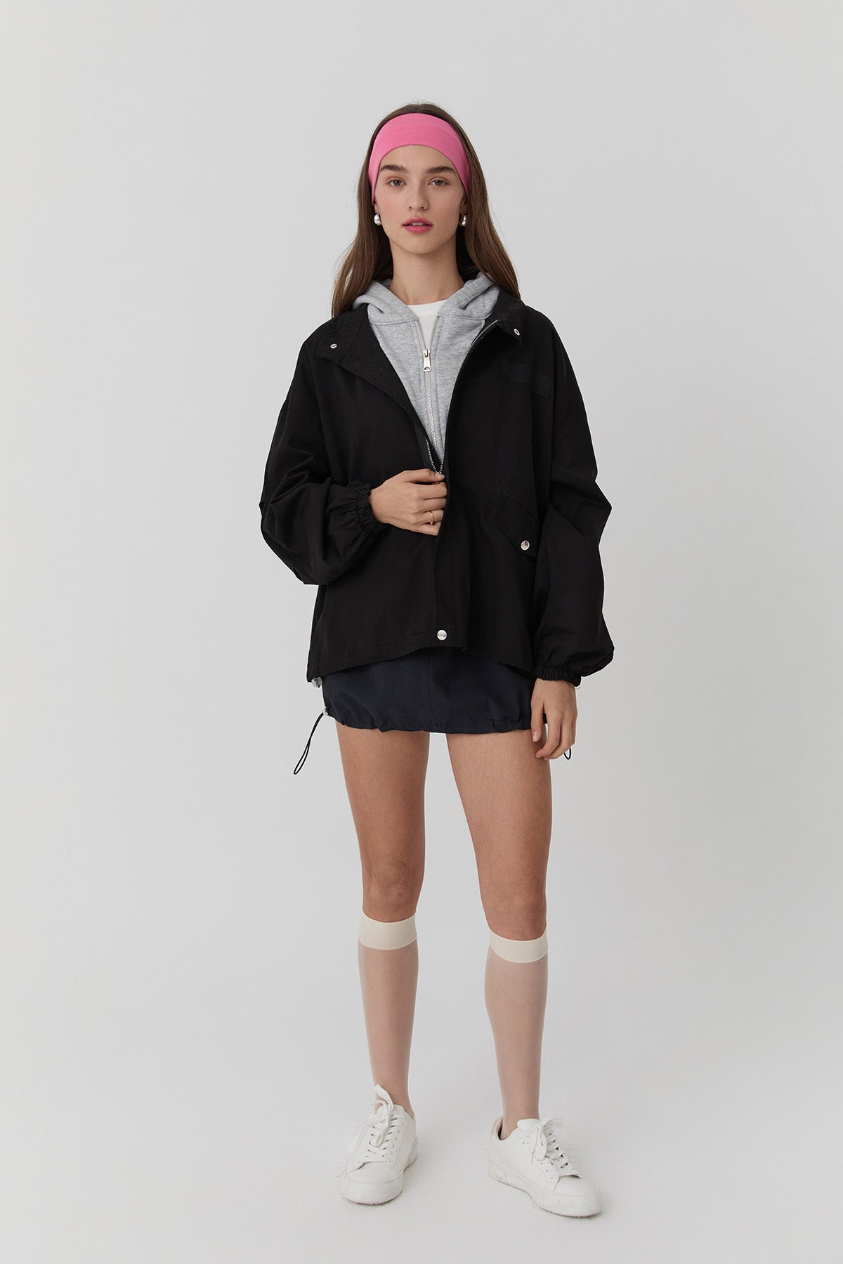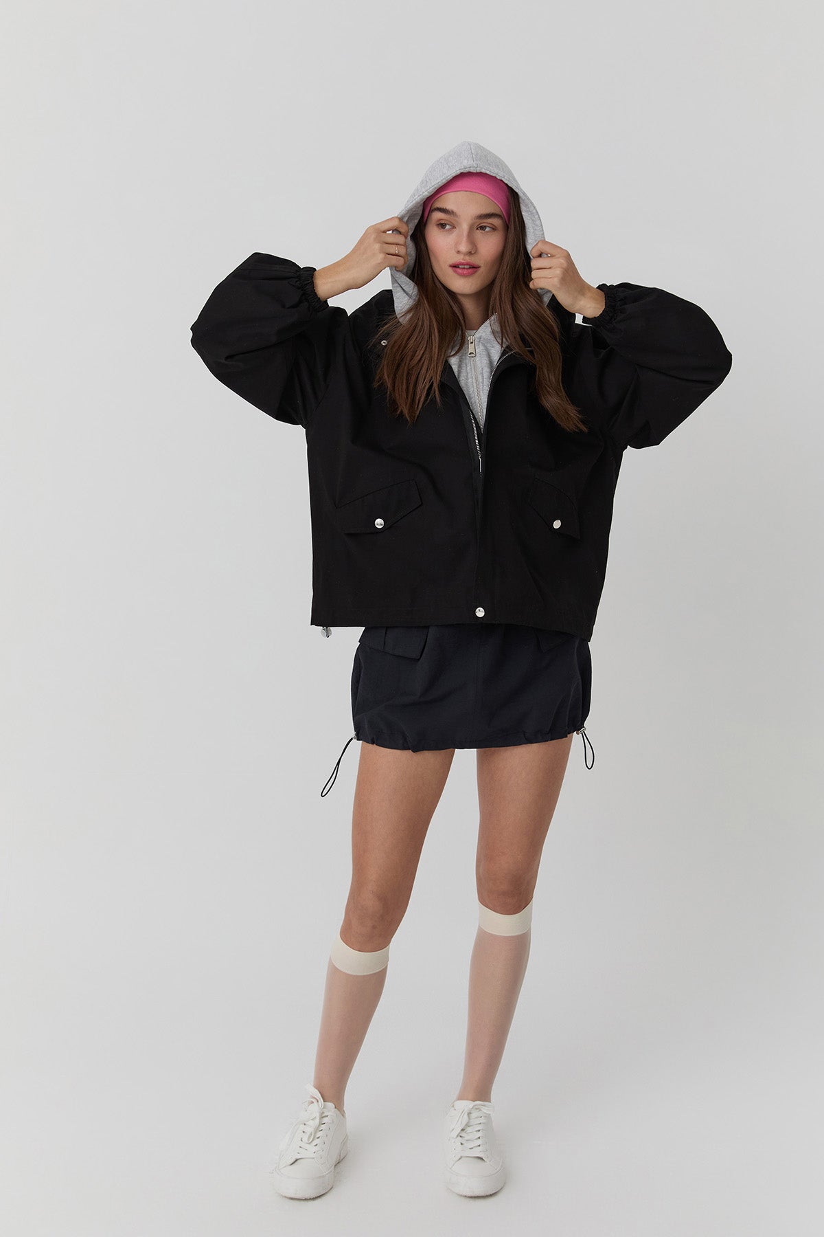 Kapüşonlu Cep Detaylı Ceket Siyah
