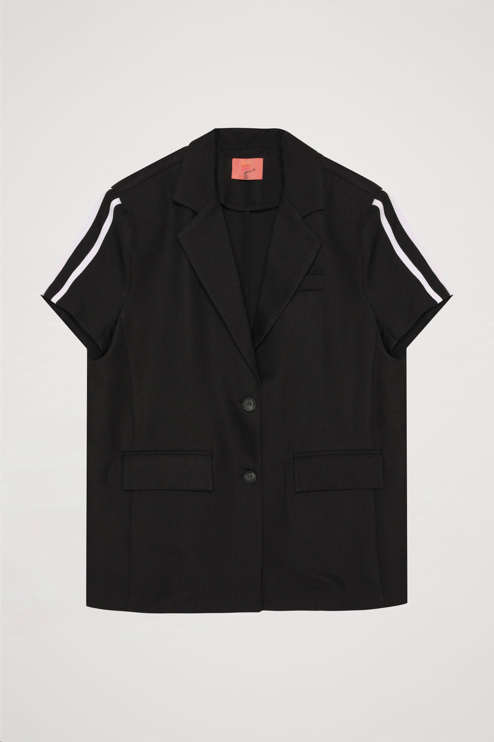 Kruvaze Yaka Şerit Çizgili Kısa Kol Ceket Siyah