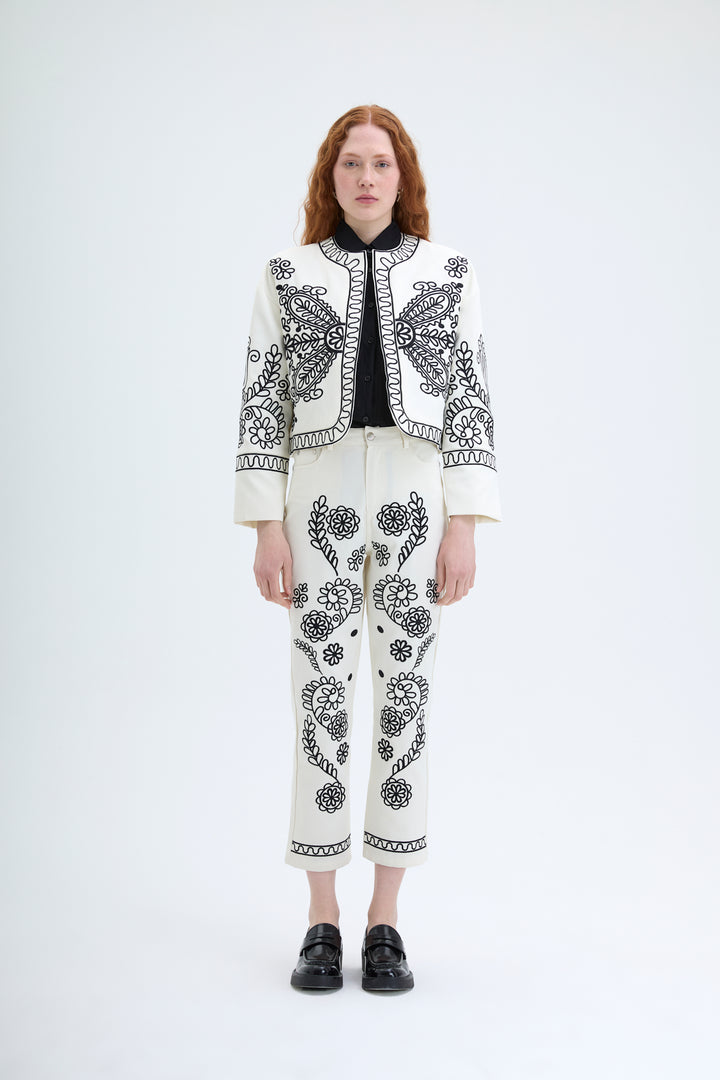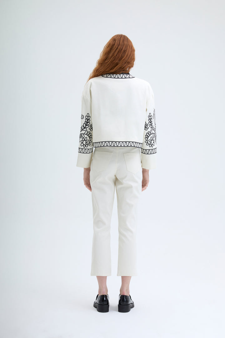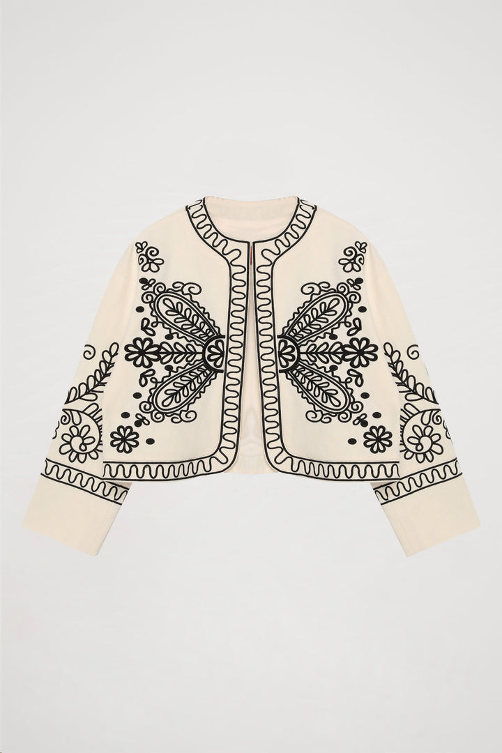 Nakış İşlemeli Ceket Ekru